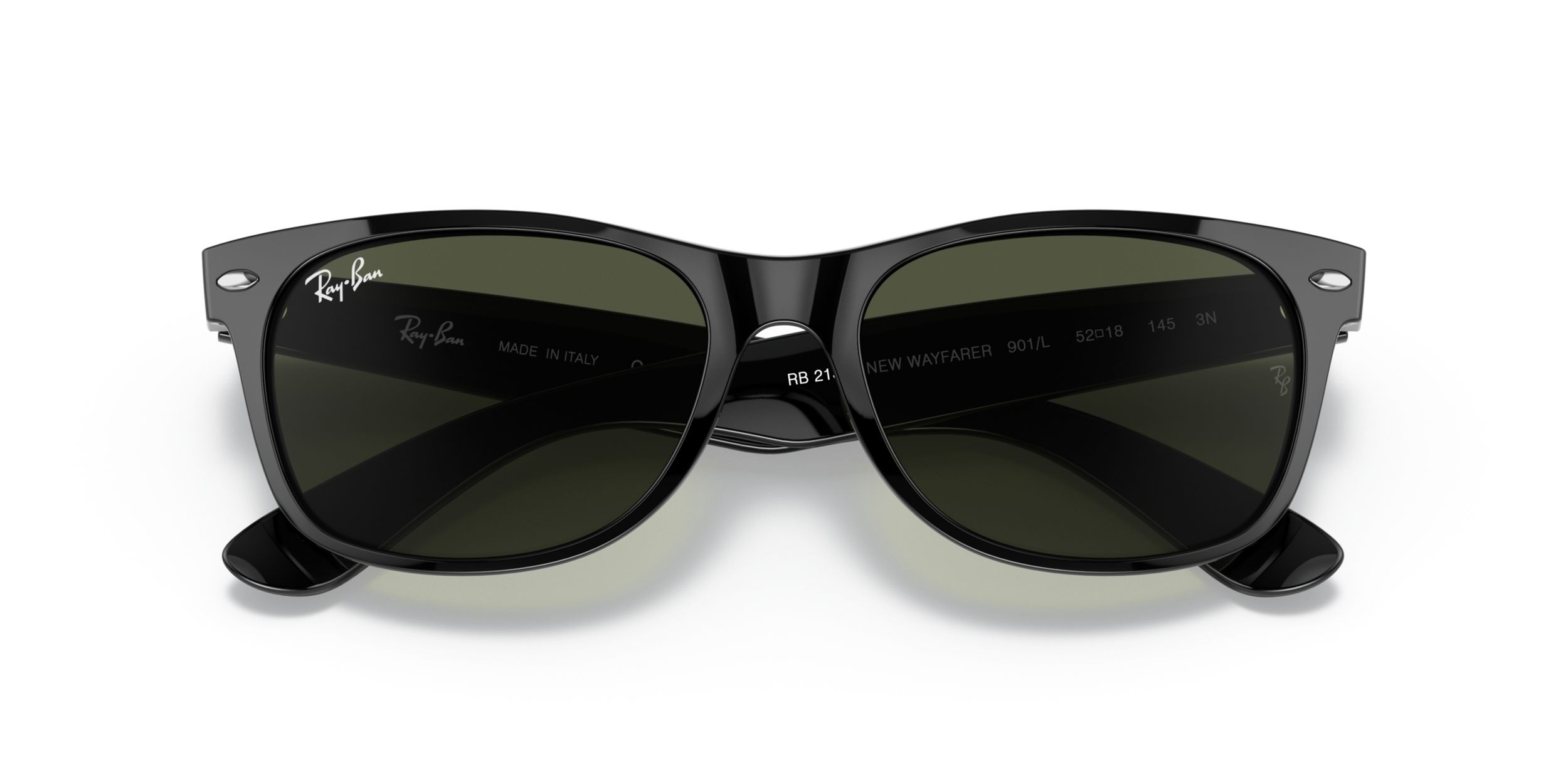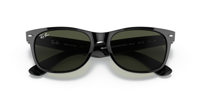 These New Wayfarer sunglasses from Ray-Ban block harmful UV rays. They come in lens colour G15XLT, crystal green.