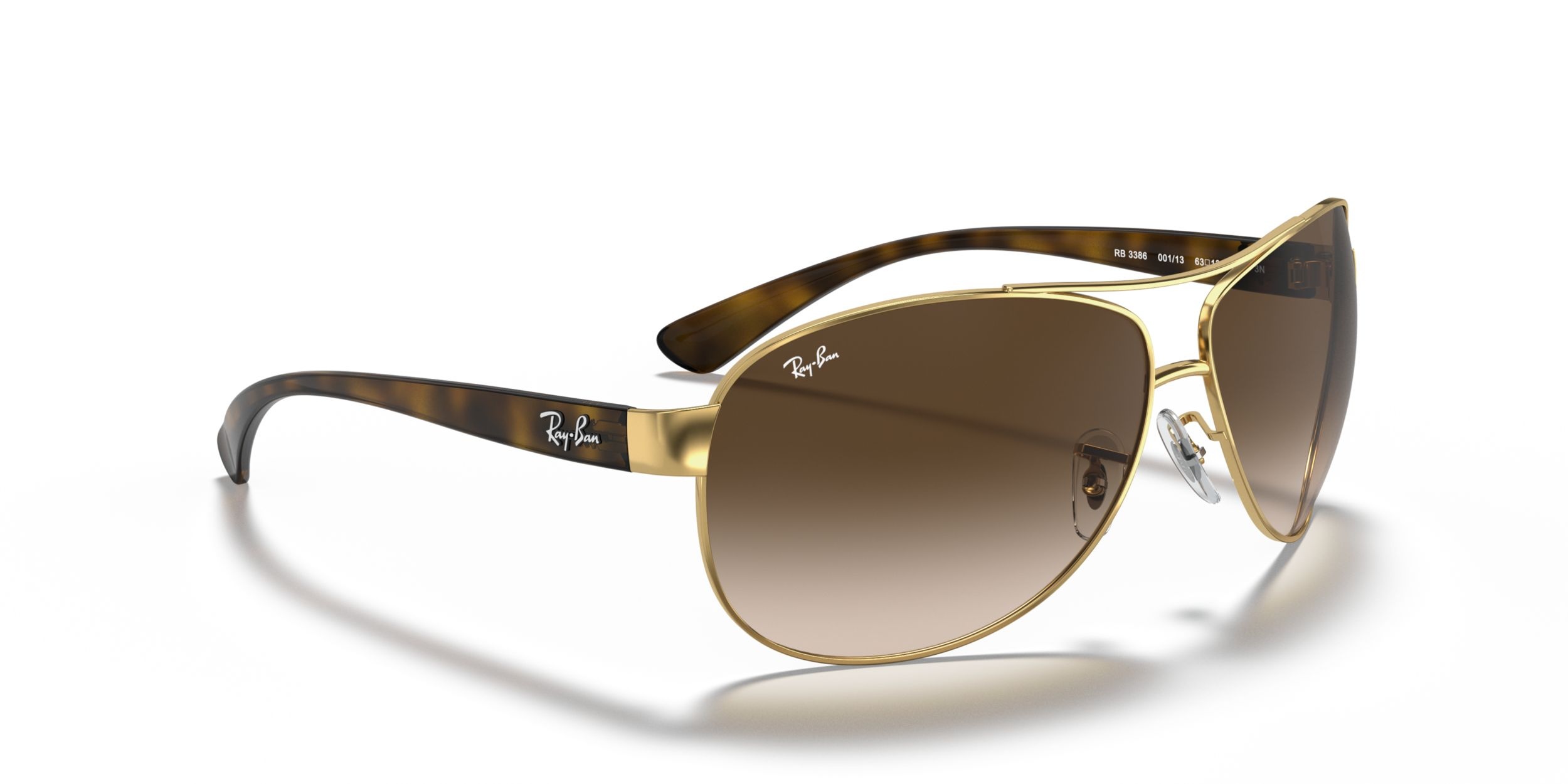 Ray-Ban RB3386 features an oversized Aviator inspiration, modeled with a retro yet sporty sunglasses look. RB3386 sunglasses join the Active sunglasses family with their wrapped frame allowing for full coverage and a secure fit.