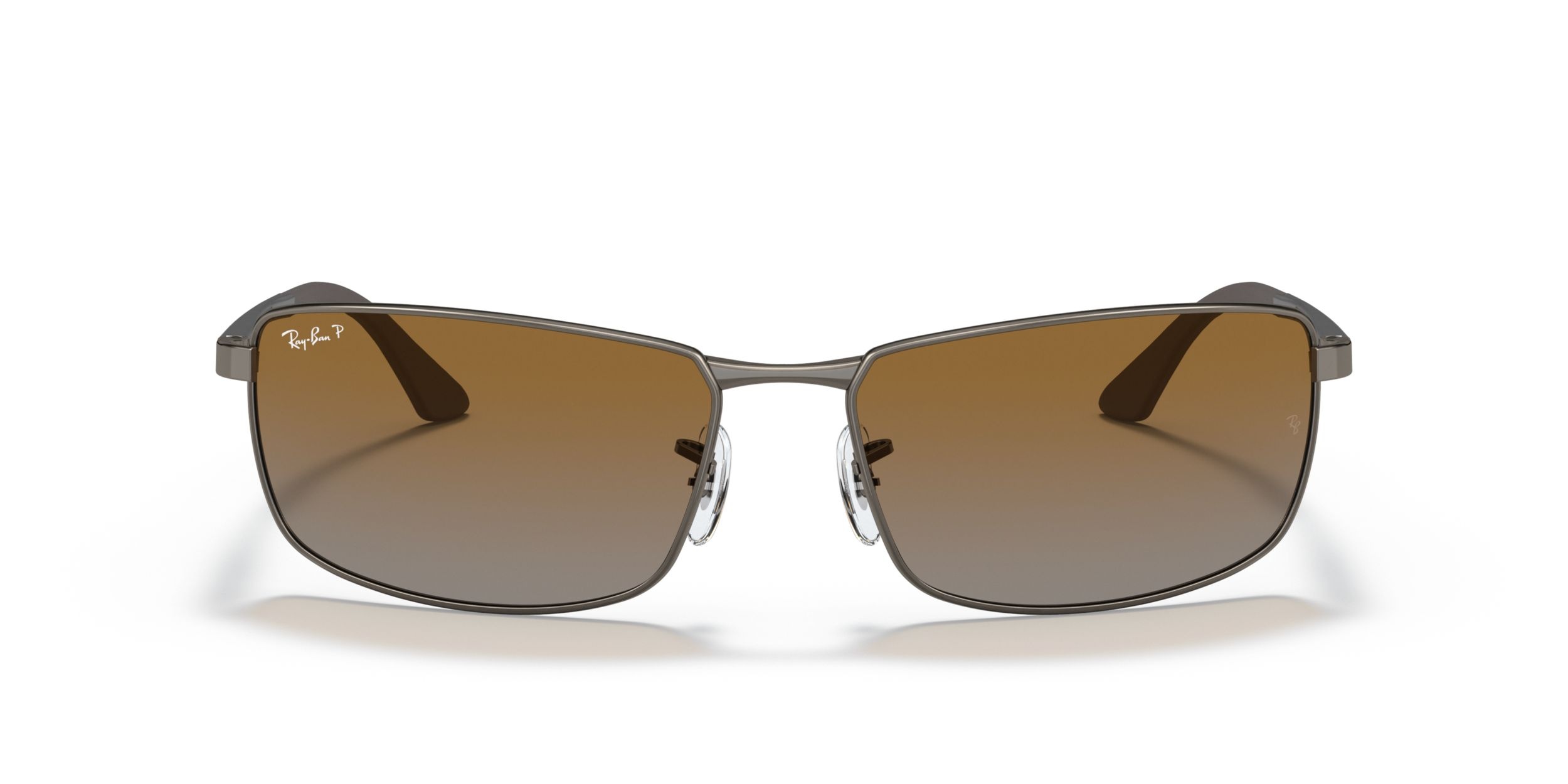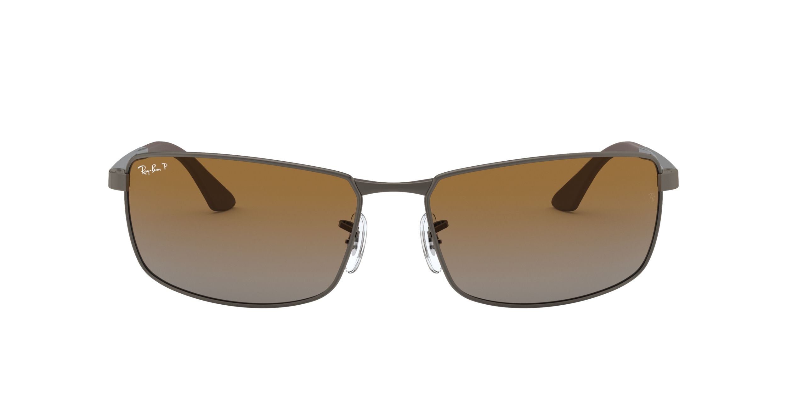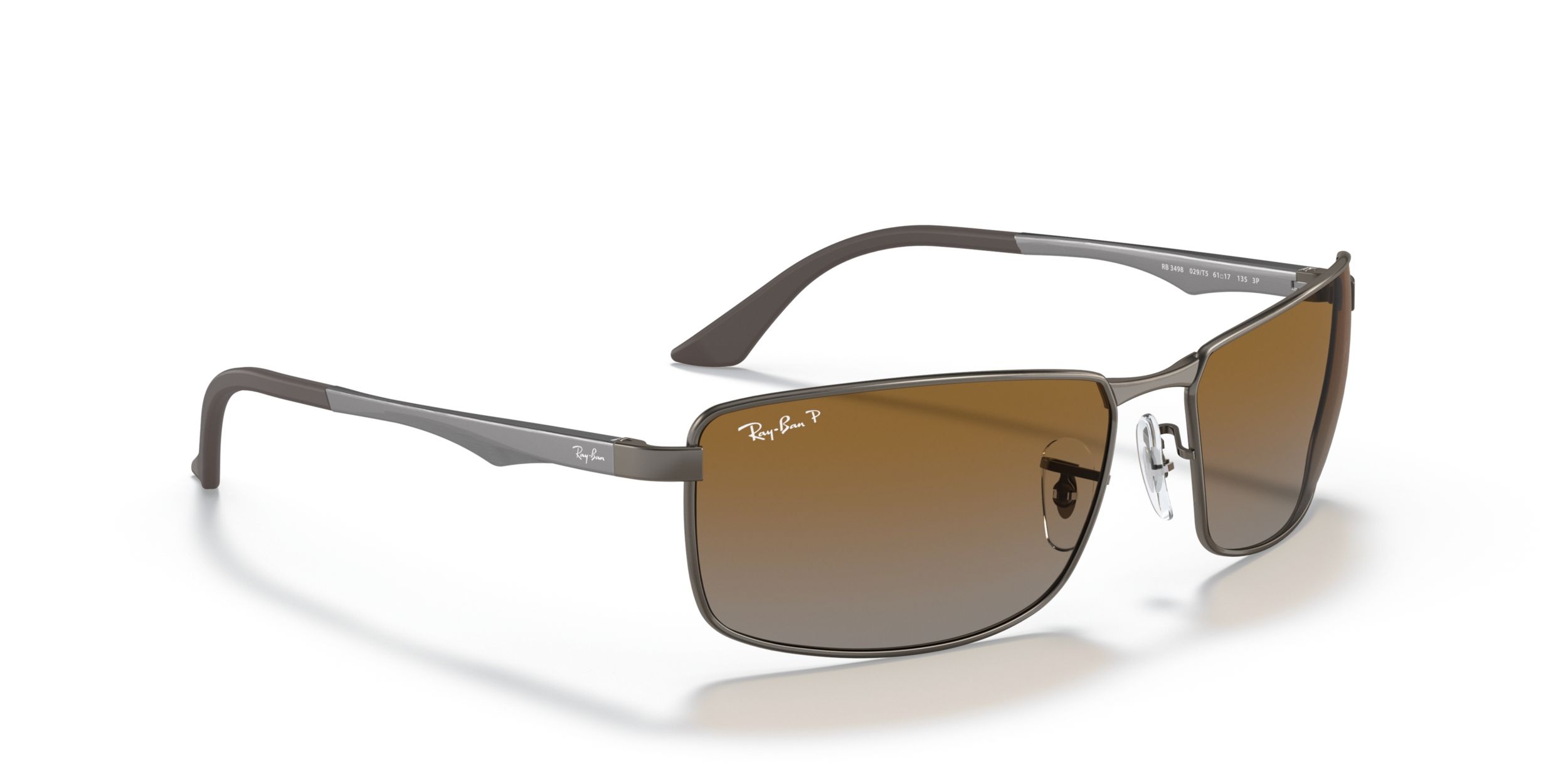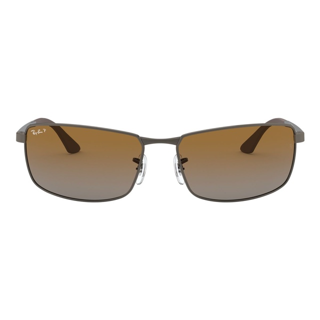These Ray Ban 3498 Rectangle Sunglasses feature polarized lenses, brushed aluminum frames and matte rubber temples for durability and comfort. Spring-loaded hinges ensure a perfect fit. These Ray Ban sunglasses come with a carrying case and lens cloth for added convenience.