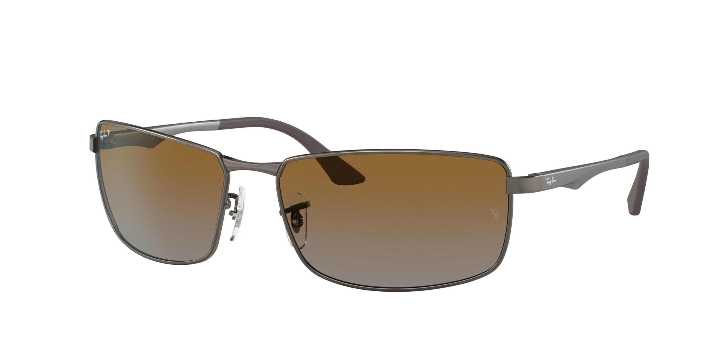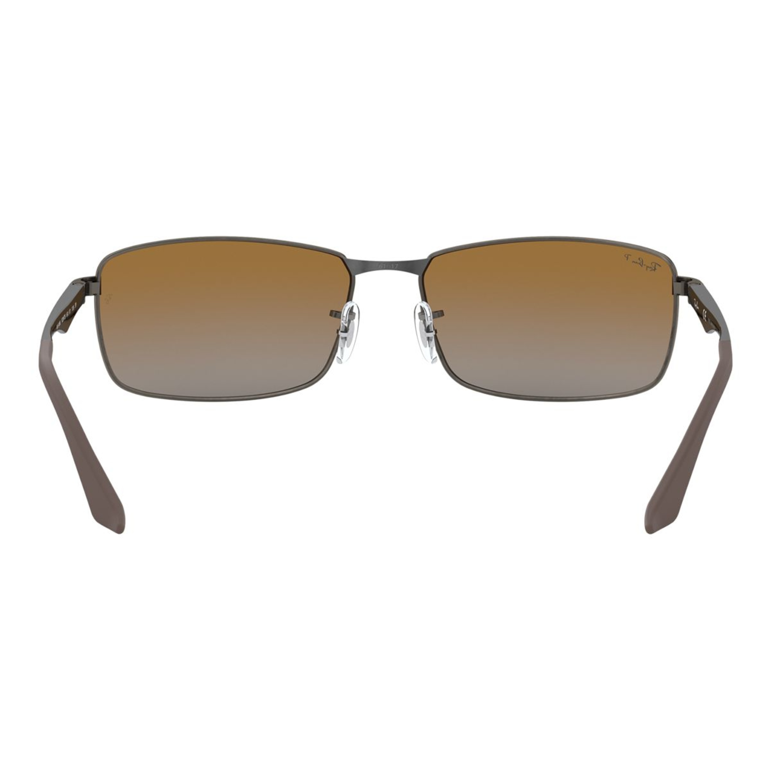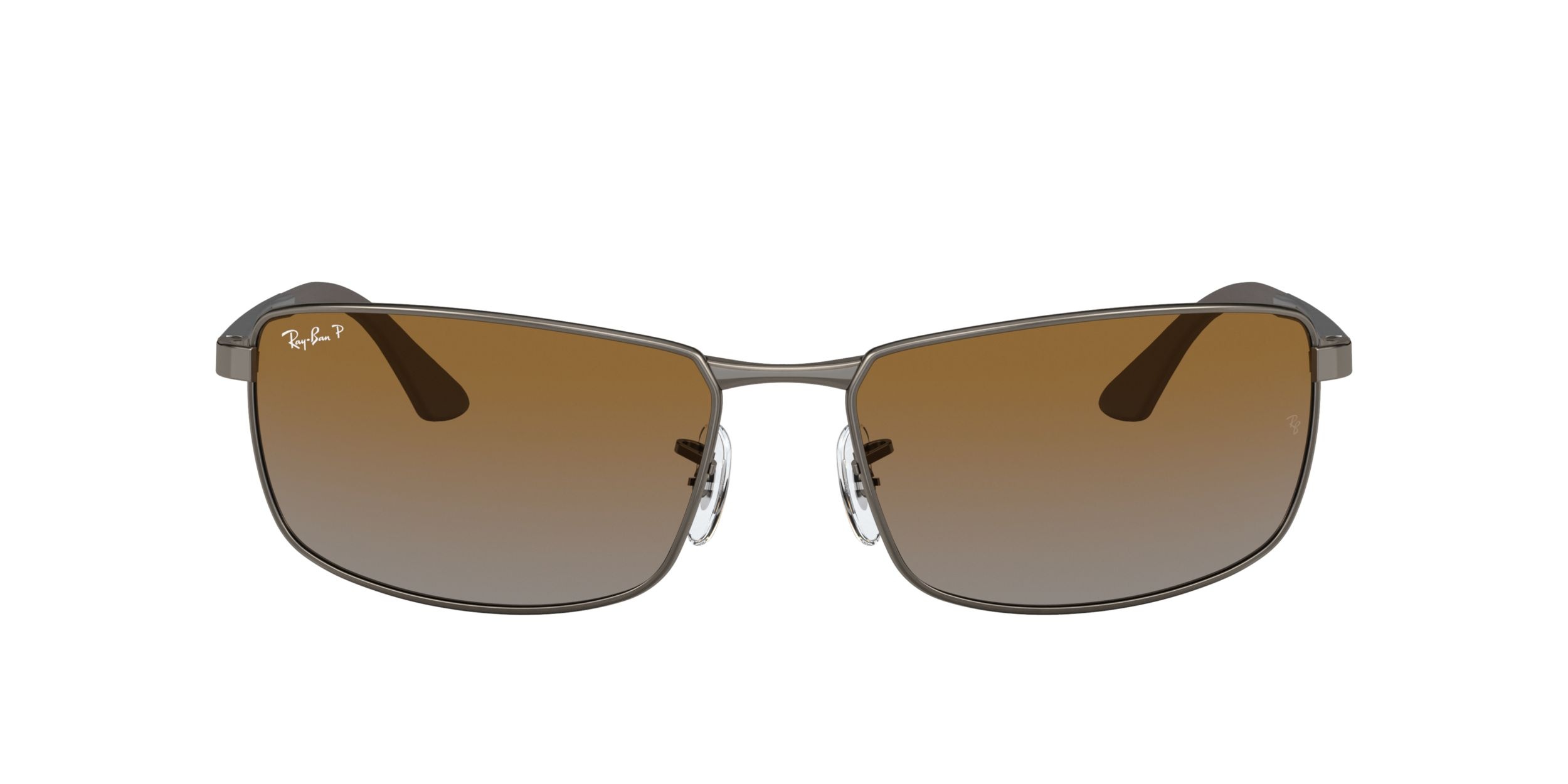 These Ray Ban 3498 Rectangle Sunglasses feature polarized lenses, brushed aluminum frames and matte rubber temples for durability and comfort. Spring-loaded hinges ensure a perfect fit. These Ray Ban sunglasses come with a carrying case and lens cloth for added convenience.