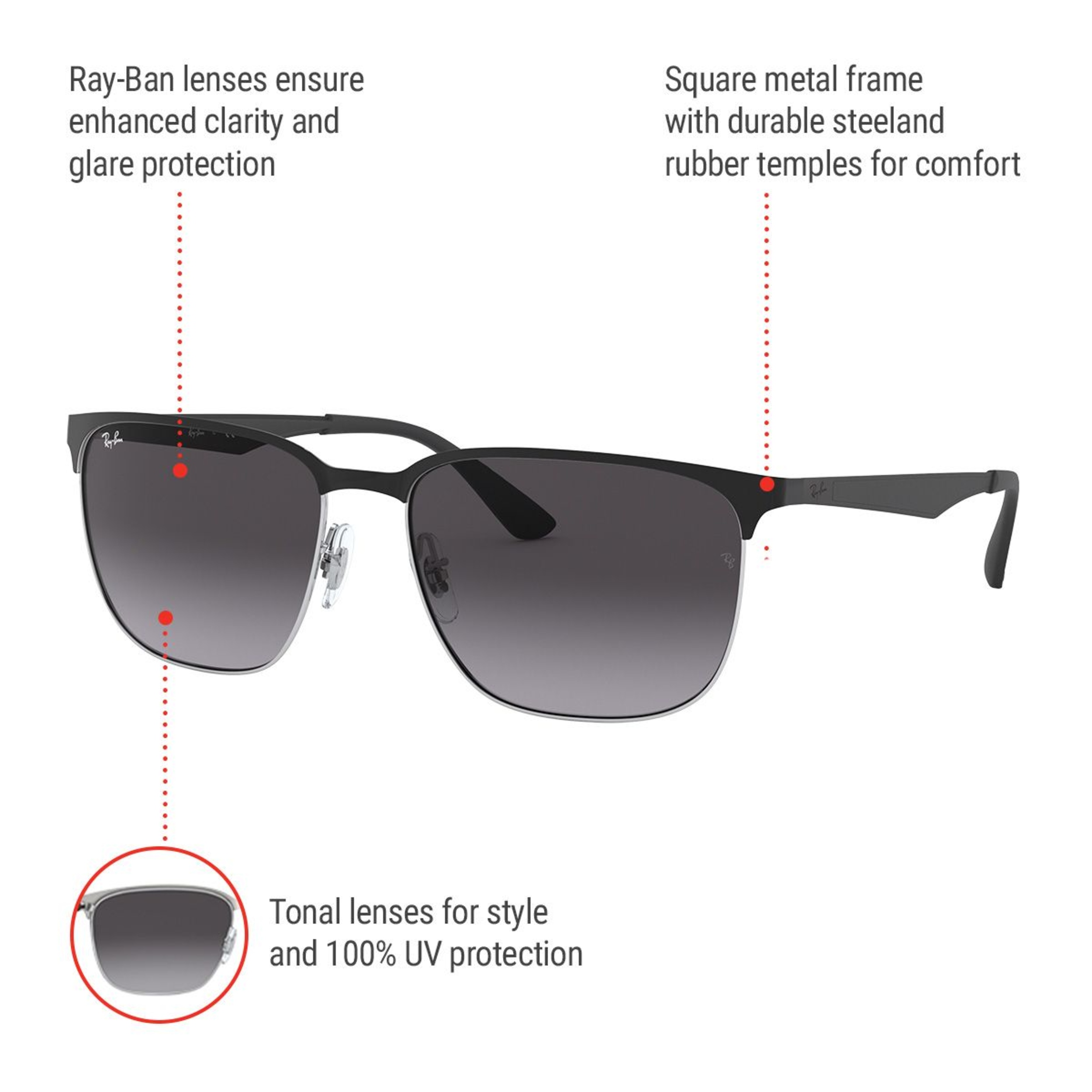 The Ray-Ban Unisex 3569 Browline Sunglasses effortlessly blend style and durability. These fine square metal frames feature robust steel and rubber temples, tonal lenses in classic hues and captivating metallic rims in gold, brown or silver. With 100% UV protection, these high quality Ray-Ban browline sunglasses offer enhanced protection and clarity on sunny days.