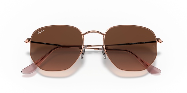 The Ray-Ban Unisex Hexagonal Sunglasses blend round and angular shapes for a bold, modern twist on a classic design. Featuring flat crystal lenses, thin gold metal frames, and ultra-slim temples, this updated silhouette delivers a unique edge to everyday wear.