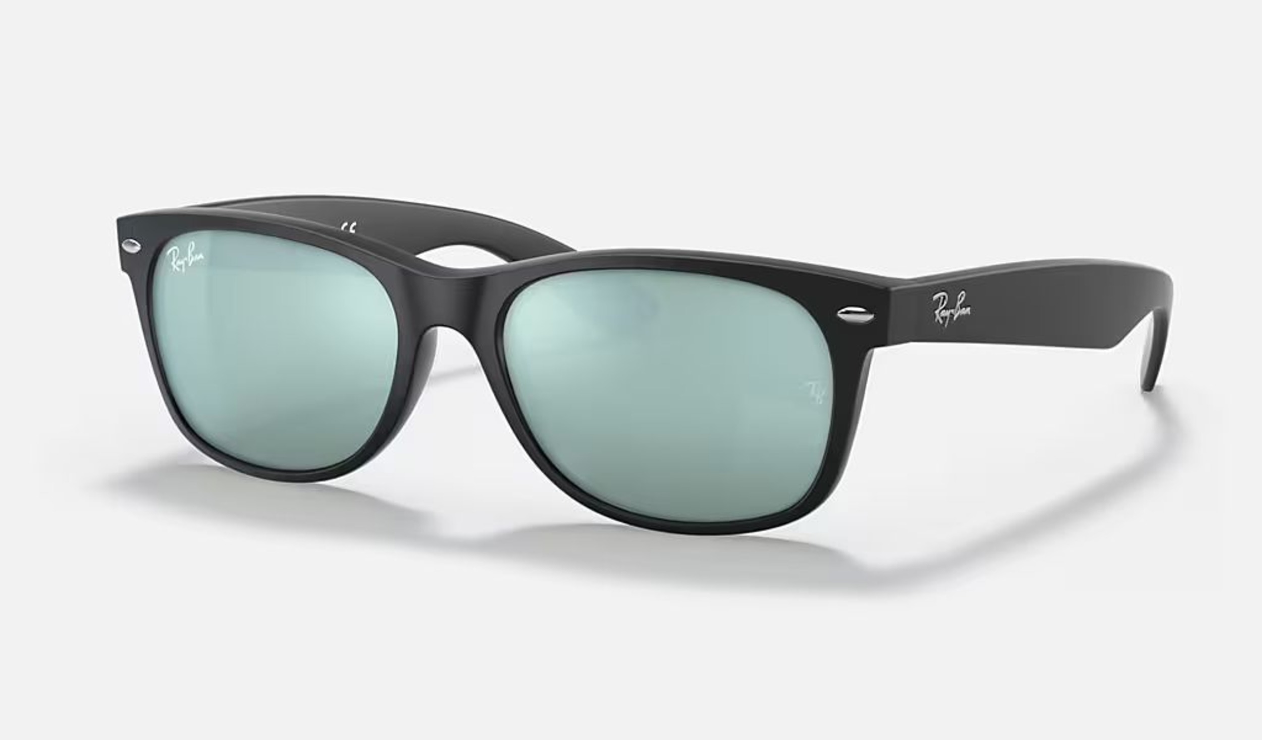Iconic Ray-Ban Wayfarer design features a shiny metal frame for a timeless style