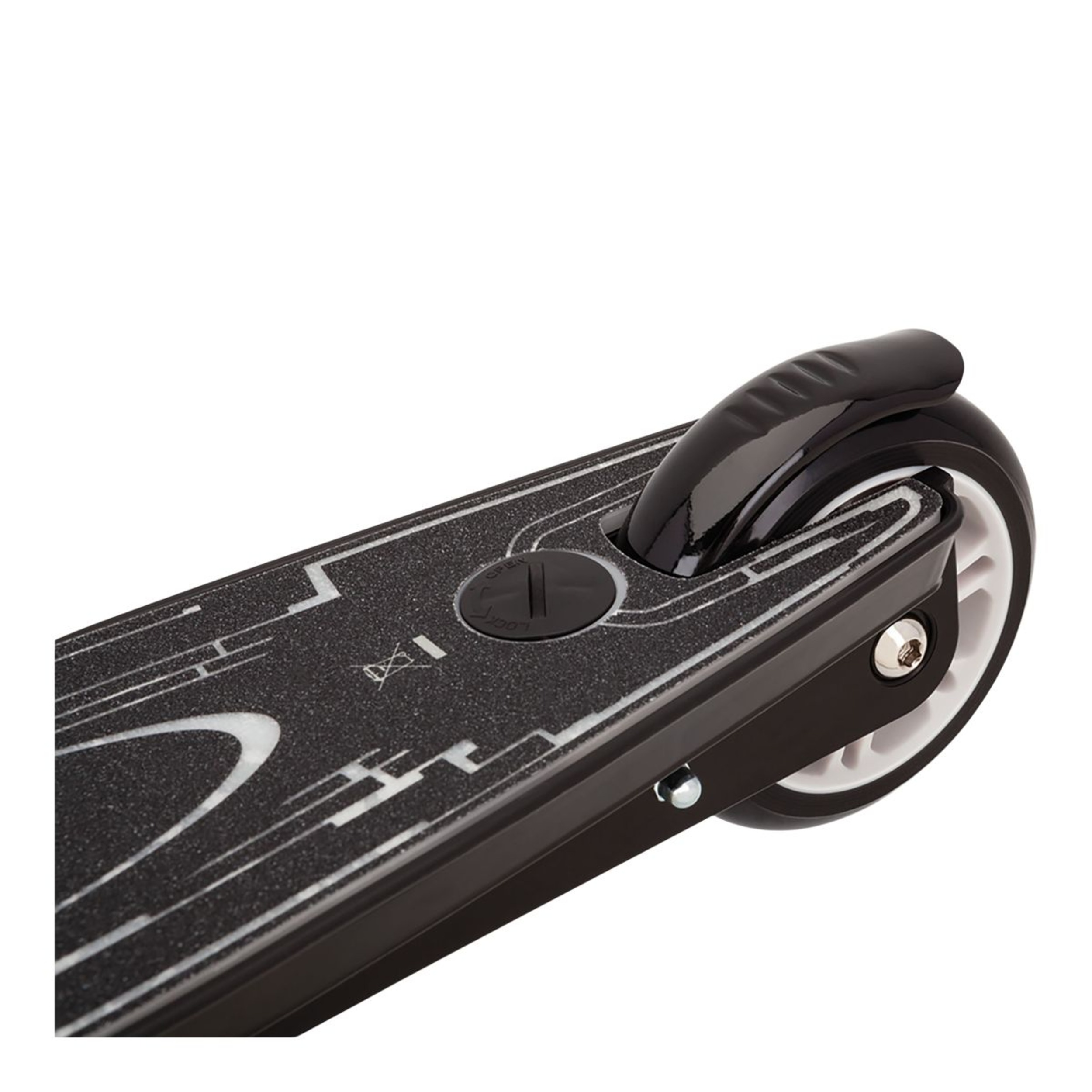 Step on board the Tekno light-up scooter and step up the excitement with a new dimension of flashing fun. Keep the fun rolling as you take this light show on wheels through the neighbourhood! The pulsating LED lights are embedded in the deck and powered by two (2) AAA (included and replaceable) batteries. Supports riders up to 143 lbs (65 kg).