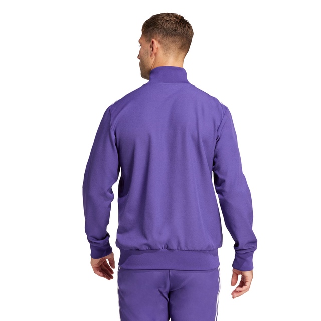 Sport the iconic 80's football fashion with a modern twist in the Real Madrid Icon Track Top. This slim-fit tracksuit jacket, made in part with recycled materials, is a nod to both sustainability and style. The knit construction ensures comfort while the embroidered trefoil logo and club crest, along with iconic 3-stripes tape branding, add an authentic touch. Designed for fans who appreciate football culture and fashion alike - it's more than just apparel, it's a statement.