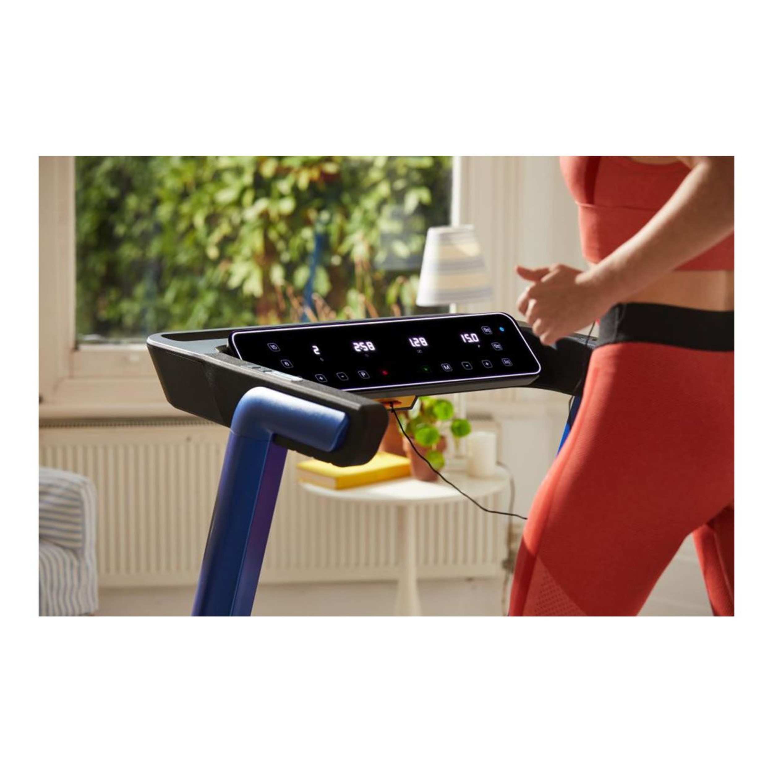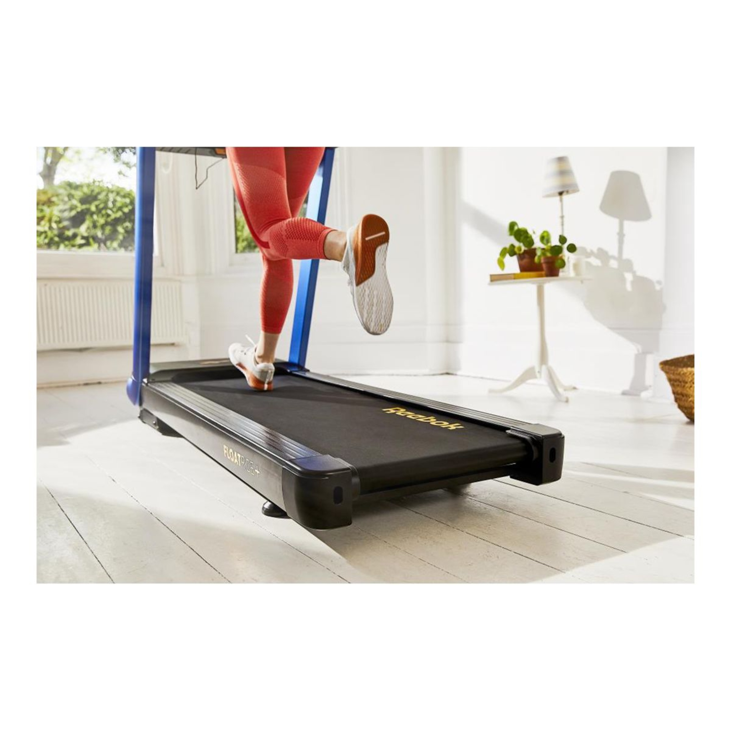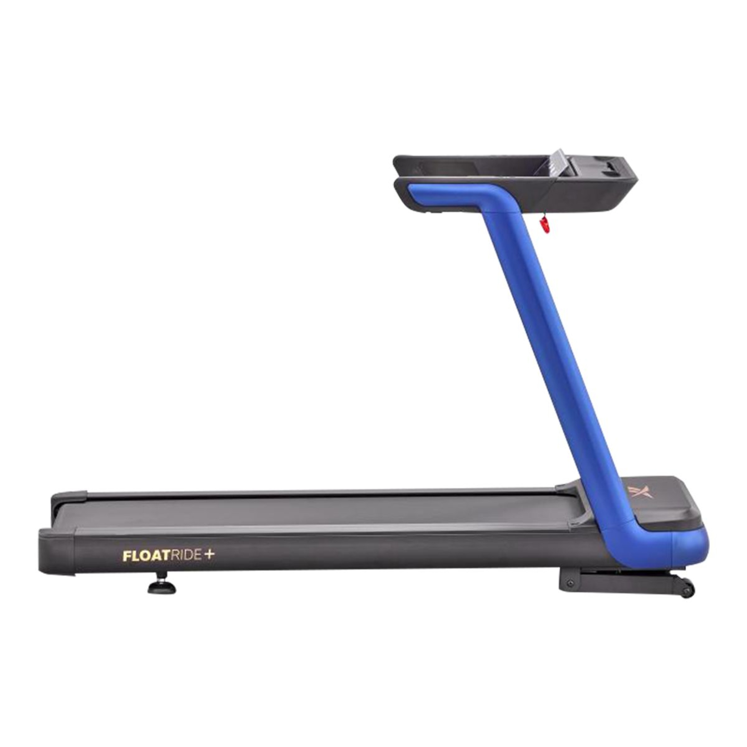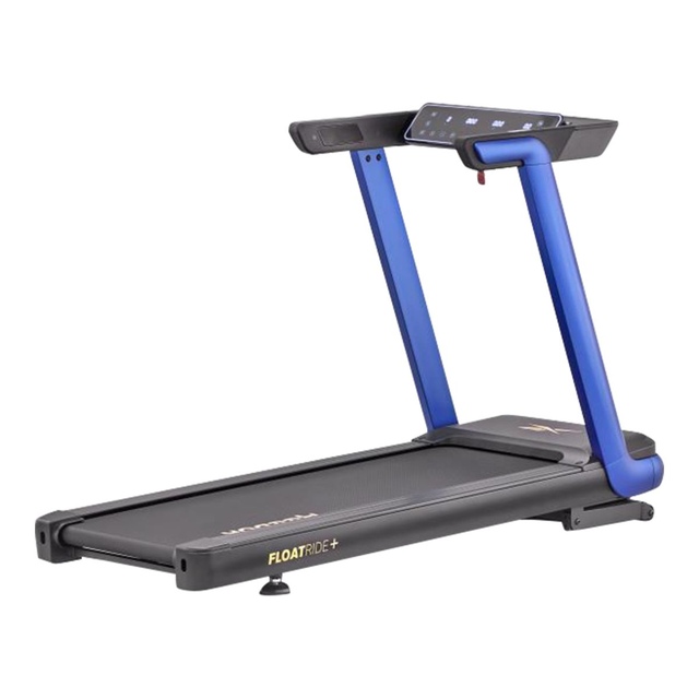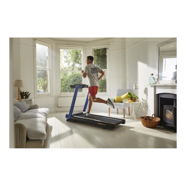 Introducing the FR20 Floatride Treadmill, designed to enhance the home running experience. It features a compact and energy-efficient eco-Kinetic motor with a peak output of 2.25 HP, providing speeds up to 11.2 mph. The Floatride+ cushioning technology reduces impact strain on joints for a smooth ride. With 15 levels of power incline, 24 fitness programs, and compatibility with the Reebok Fitness App, runners have complete control over their workouts. The treadmill includes surround sound speakers and a smart device media dock for entertainment. Progress can be tracked through the LED console and the Reebok Fitness App for personalized goals.
