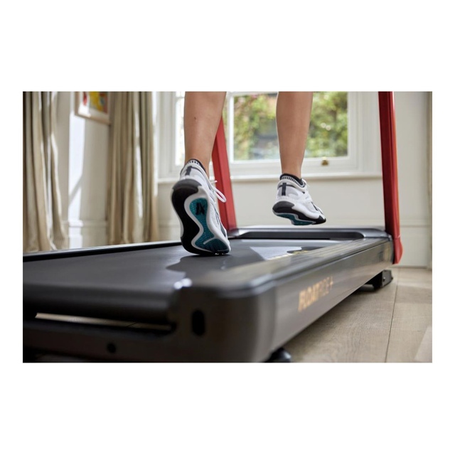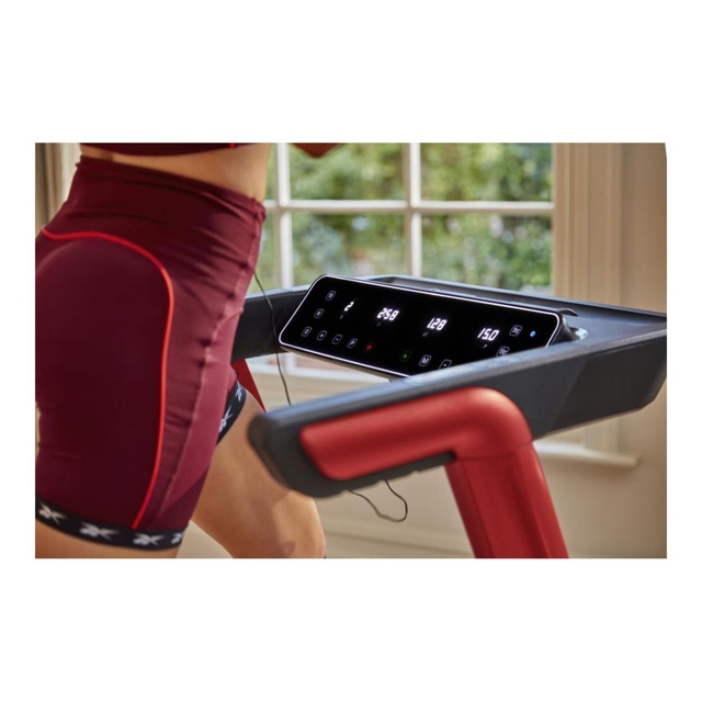 Please add it to your Wishlist for a notification when it’s back.Introducing the FR20 Floatride Treadmill, designed to enhance the home running experience. It features a compact and energy-efficient eco-Kinetic motor with a peak output of 2.25 HP, providing speeds up to 11.2 mph. The Floatride+ cushioning technology reduces impact strain on joints for a smooth ride. With 15 levels of power incline, 24 fitness programs, and compatibility with the Reebok Fitness App, runners have complete control over their workouts. The treadmill includes surround sound speakers and a smart device media dock for entertainment. Progress can be tracked through the LED console and the Reebok Fitness App for personalized goals.