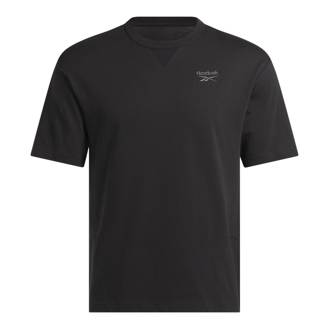 The Reebok Men's Icon Elements T Shirt adds an athletic edge to casual style. Made from ultra-soft cotton, it offers all-day comfort. Featuring Vector-inspired cut lines and an embroidered Reebok logo, this t shirt delivers a modern, sporty look that's perfect for both active wear and laid-back weekends.