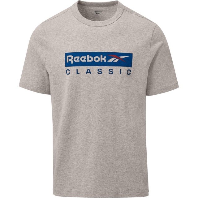 Show some Reebok love during your downtime in this men's t-shirt. Soft cotton keeps you comfy all day and makes it feel like an old favorite right from the start. A bold stacked logo finishes the look. Our cotton products are entirely sourced through sustainable cotton farming and are made with at least 50% Better Cotton.