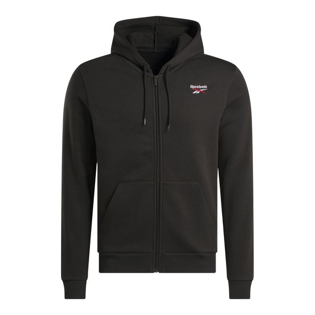 Meet the ultimate mashup of comfort and style in this Reebok Men's Identity Small Logo Full Zip Hoodie. Built from soft fleece fabric, it's designed with an adjustable hood and a full zip so you can layer a favorite tank or tee underneath. A ribbed hem and cuffs shape the classic fit.