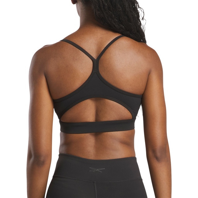 Find your balance with the Reebok Women's Eliza Yoga Low Strappy Sports Bra. The RBK-DRY technology ensures you stay cool and dry throughout your workout. Its strappy design offers a stylish appearance. Perfect for activities like power yoga and barre, this bra offers medium support to keep you comfortable.