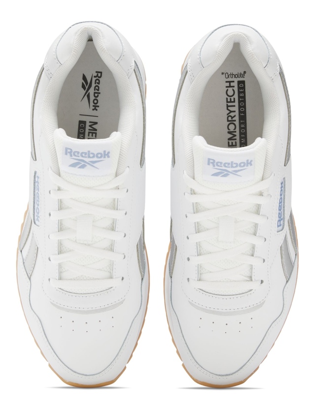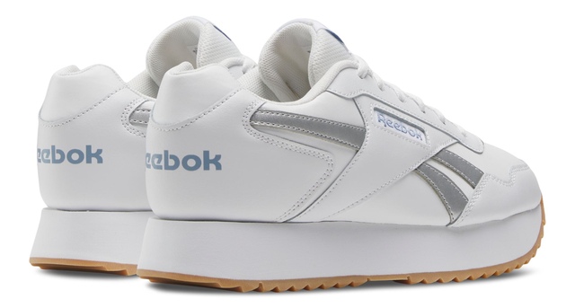 Glide through the day. These women's Reebok shoes have vivid iridescent details on the side stripes and heel tab to give them some pop. The platform-style midsole adds a little height boost. Wear them when you run errands, meet up with a few friends, or just when you take on your active day.