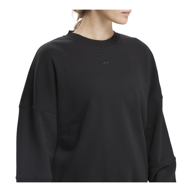 Throw on this Reebok Women's Lux Fleece Oversized Sweatshirt and bring deep relaxation with you everywhere you go. Totally casual and absolutely comfortable, fleece fabric and an unrestricted fit give it a cozy feel. Drop shoulders show off a laid-back style.