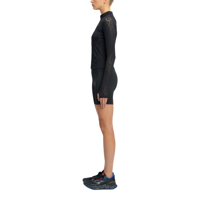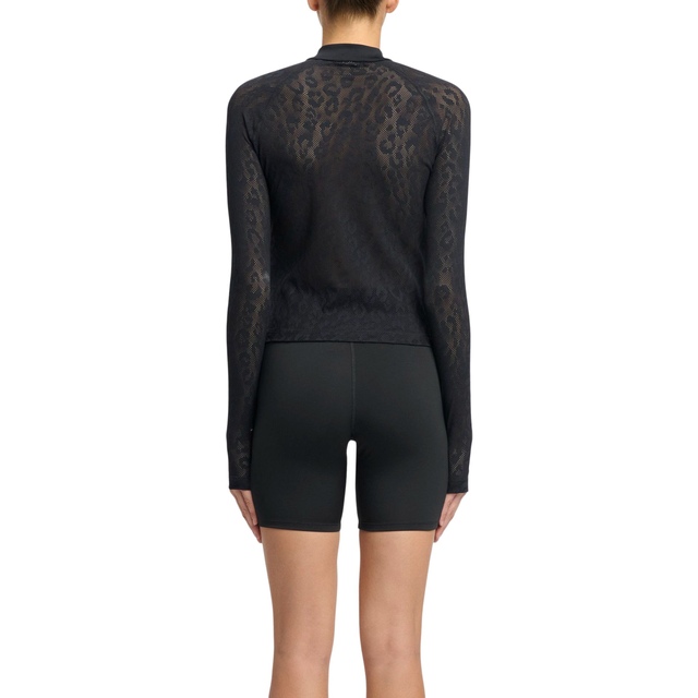 The Reebok Women's Mesh Full Zip Top combines comfort with bold style. Made with leopard-patterned mesh panels and a stretch-infused interlock jersey bodice, it offers a flattering fit. This zip-up top is ideal for layering during workouts, adding a touch of wild flair to your activewear.