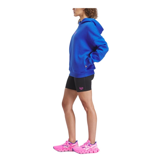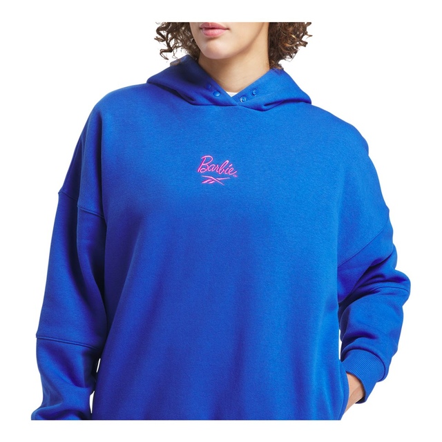 The Reebok Women's X Barbie Hoodie champions the Barbie Dream Gap Project's mission to empower girls by challenging societal biases. An embroidered Barbie logo adorns the chest, showcasing the collaboration.