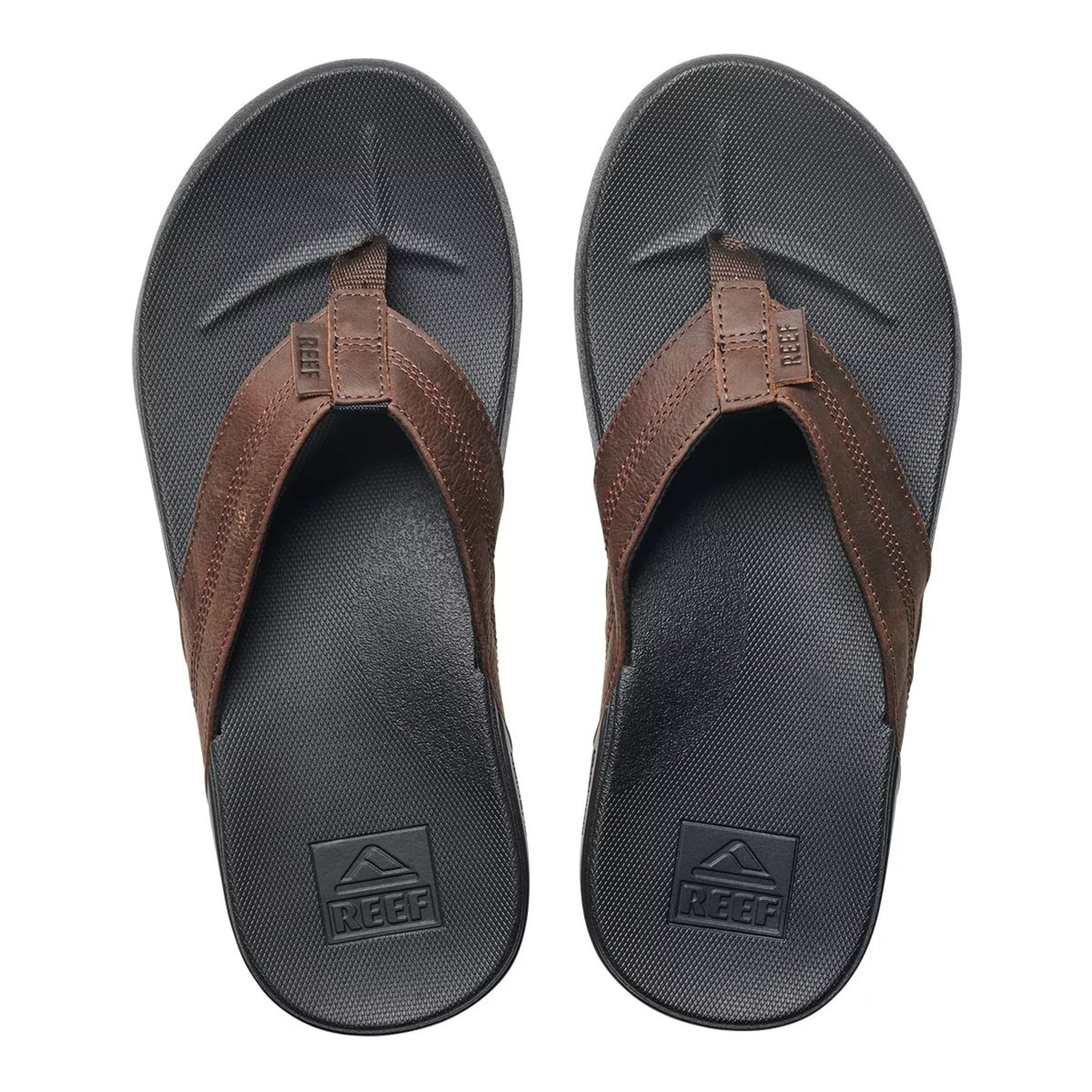 Ideal for a stroll along the beach or a sunny day in the city, these Reef Men's Cushion Bounce Phantom Sandals offer impressive comfort and support. The men’s sandals feature a relaxed, beach-inspired design and durable full-grain leather uppers for long-lasting casual style. High-energy cushioning, jersey lining, anatomical arch support and heel cupping give them a soft, yet stable feel perfect for all-day wear. The Reef men’s sandals are finished with high-density rubber sponge outsoles that provide reliable traction to help you keep your footing on slick surfaces.