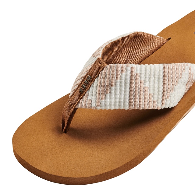 The Reef Women's Spring Woven Sandals offer a classic, conscious beach style made from 100% recycled plastic bottles. Soft, wide straps hug your feet in cushiony comfort with a soft EVA footbed that provides anatomical arch support for all-day walkability. A lightweight, durable rubber sponge outsole ensures traction. These eco-friendly sandals combine sustainable materials with cushioned comfort for the perfect warm-weather companion.