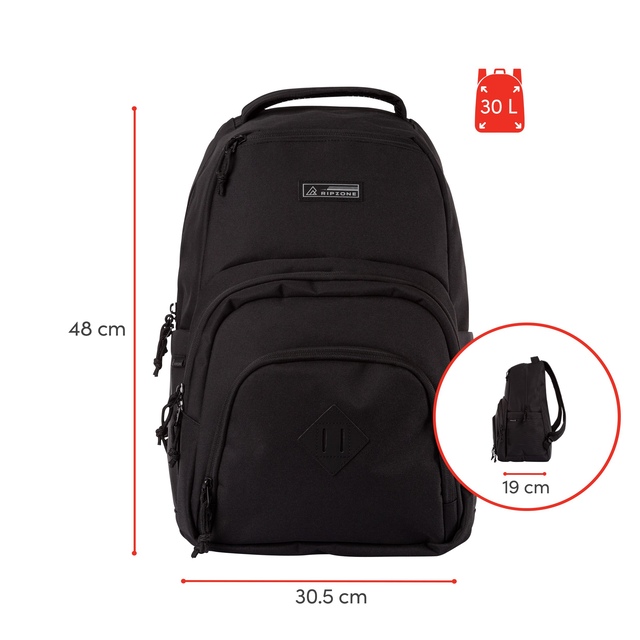 The Ripzone Bell 30L Backpack is crafted for durability and convenience, featuring padded sleeves for a 15-inch laptop and tablet, two fleece-lined pockets for valuables and expandable water bottle pockets. This spacious backpack also includes a detachable key leash and an organizer pocket to keep your essentials secure and organized.
