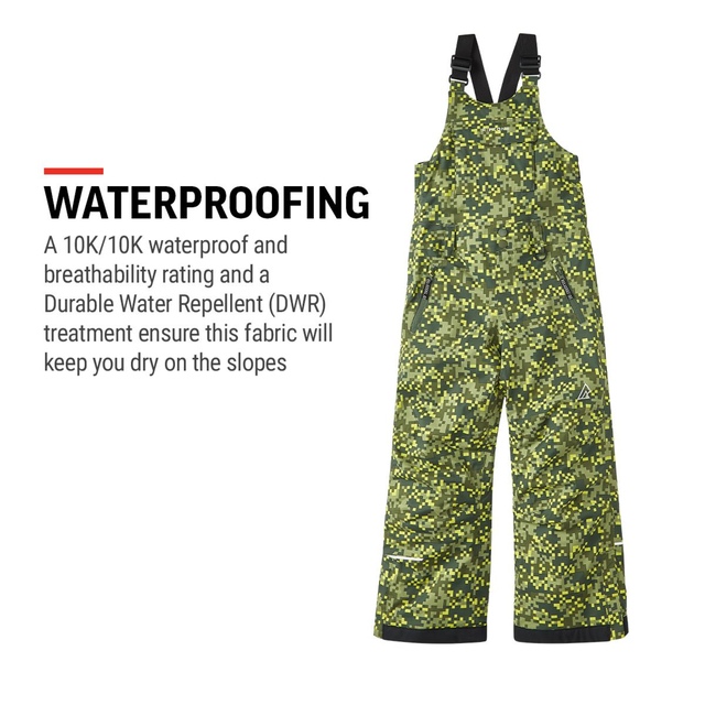 The Ripzone Boys' Solara Bib Pants are engineered for your child's winter adventures. These boys' snow pants feature a mechanical stretch shell and strategically mapped PrimaLoft Silver insulation which provide warmth where needed. The built-in GrowTech system and adjustable suspenders allow extended wear as your child grows.
