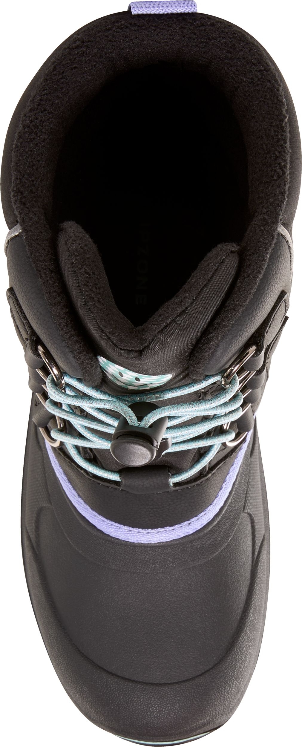 The Ripzone Girl's SubZero Insulated Shell Boot is specifically designed to accompany your explorer on all their adventures. These boots feature a sturdy TR Shell and outsole for long-lasting durability, as well as a Polyurethane (PU) and nylon upper to withstand any rough and tough situations. With 400g of T-Max insulation, they are designed to keep her feet warm and cozy during cold weather. The bungee and toggle quick lace closure makes them easy to put on and take off, and the tongue gusset prevents snow and debris from entering the boots. The polar fleece lining adds a soft and warm touch, perfect for all-day wear. For added safety, the reflective allows for enhanced visibility. Your child is sure to love exploring in these reliable and stylish boots!