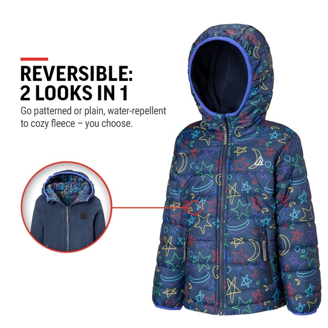 The Ripzone Infant Kids' Reversible Jacket is a versatile transitional jacket with two looks in one. A cozy 100% Polyester Fleece on one side that reverses to a hooded durable water repellent jacket on the other, with 80g of insulation it will quickly become a go-to for unpredictable weather and weekend adventures.