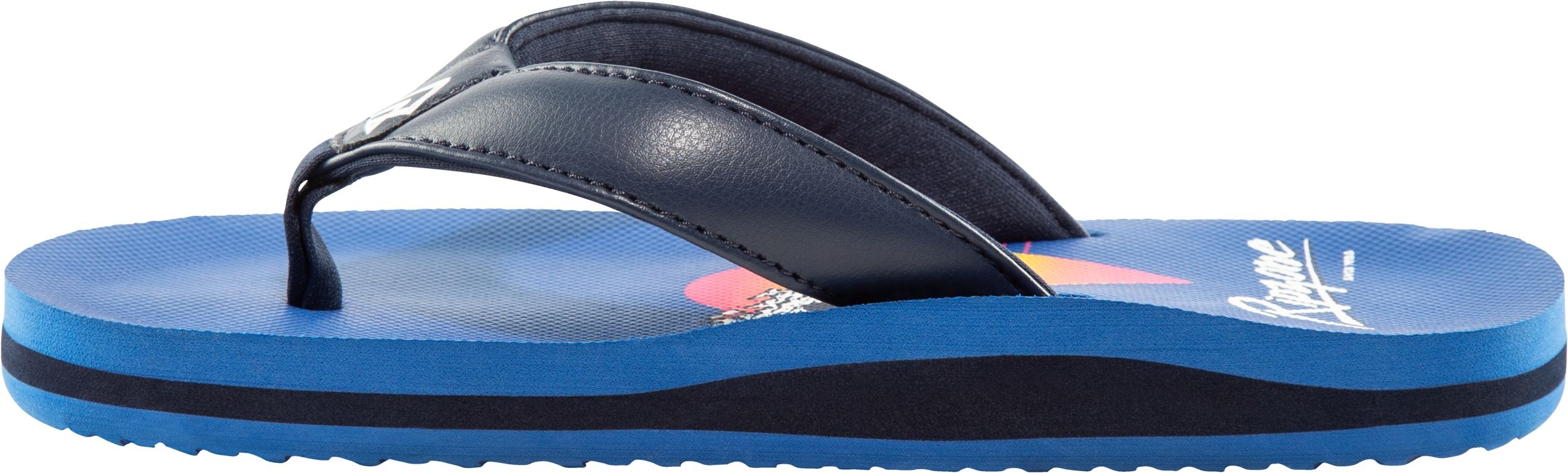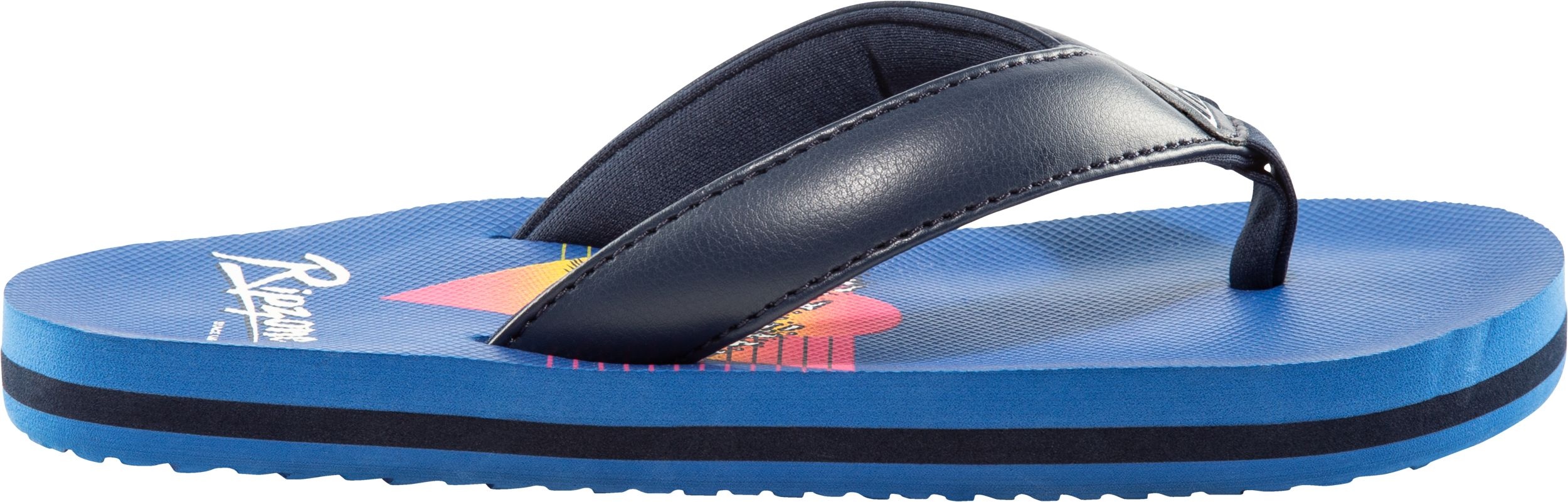 The Ripzone Kids' Kai Flip Sandals feature a PU upper strap with a soft textile lining and an enhanced comfort toe post. Boasting raised arch support and a cushioning textured EVA footbed, these sandals ensure comfort in every step. The lightweight EVA outsole of these Ripzone kids' sandals offers durability and ease for young adventurers.