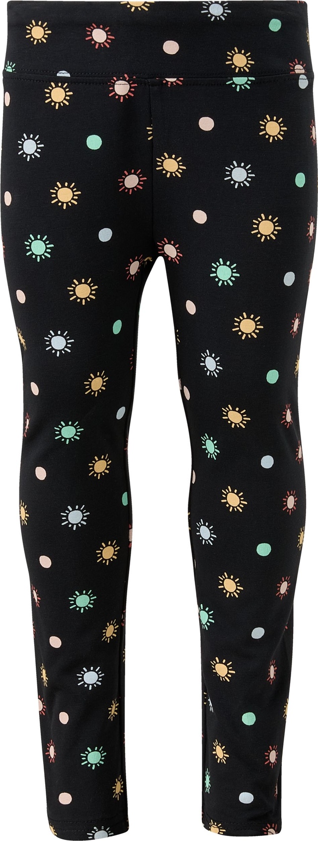 Multipack includes two leggings: one with a black polka dot inspired sun print and one in a solid pink colour