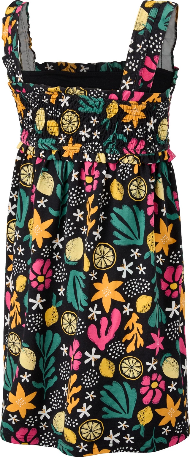 The Ripzone Kids' Lennox Dress is a warm-weather essential for summer wardrobes. Crafted from a soft and stretchy cotton and spandex, it delivers day-long comfort with its flexible, breathable material. The smocked chest provides a secure yet adjustable fit, while ruffle straps lend a playful, feminine touch. Featuring fun seasonal prints, this dress transitions seamlessly from park playdates to summer travel adventures with its versatile charm and casual style.