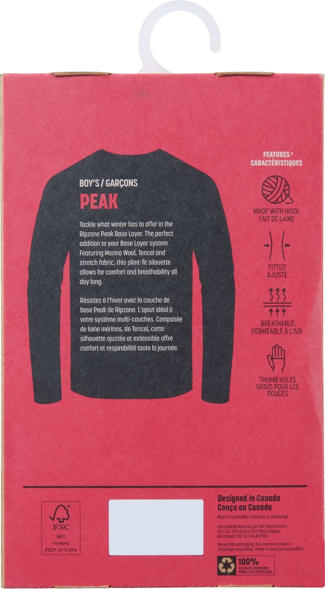 The Ripzone Kids' Peak Baselayer Top is the perfect lightweight base layer designed to keep young adventurers comfortable on the slopes. This premium merino wool blend top wicks away moisture to keep kids dry, regulates body temperature and fights odors.