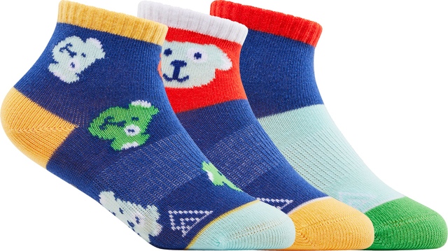 Three-pair pack of quarter crew socks comes in eco-friendly recyclable packaging