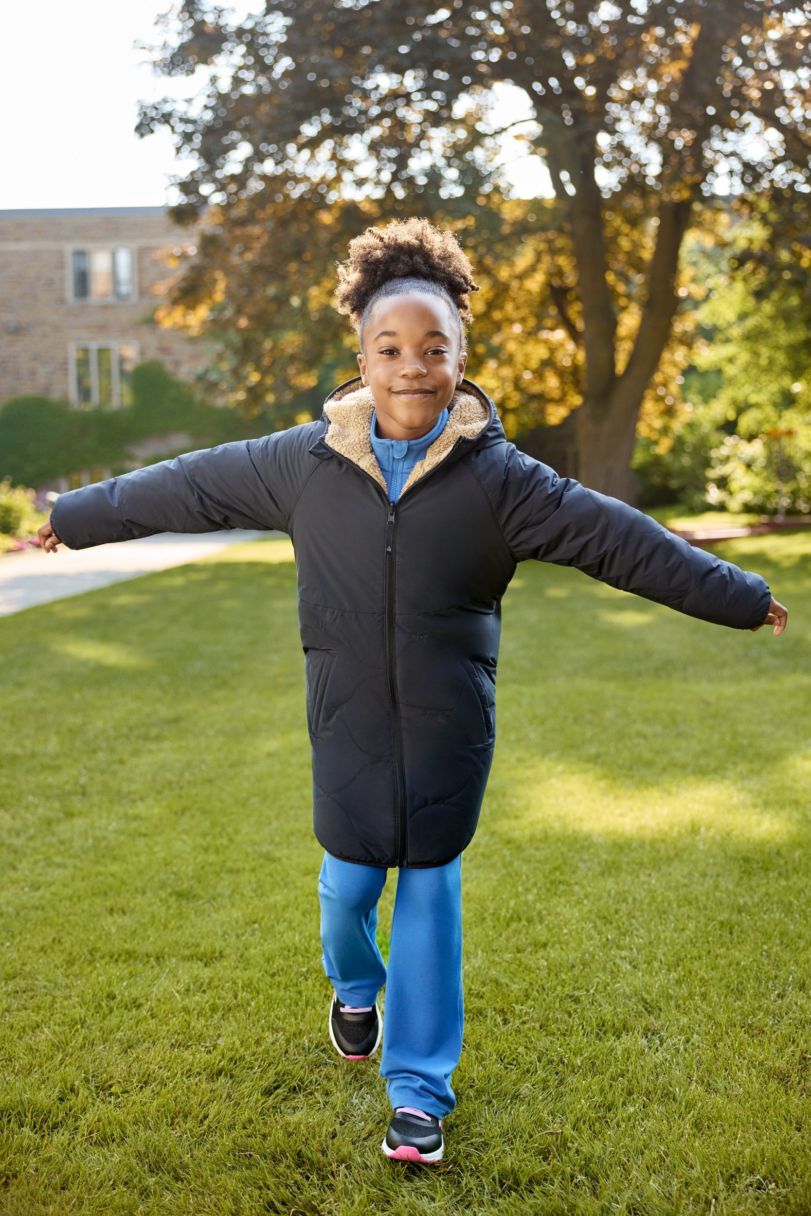 Ribbed cuffs and hem help retain warmth in cooler weather