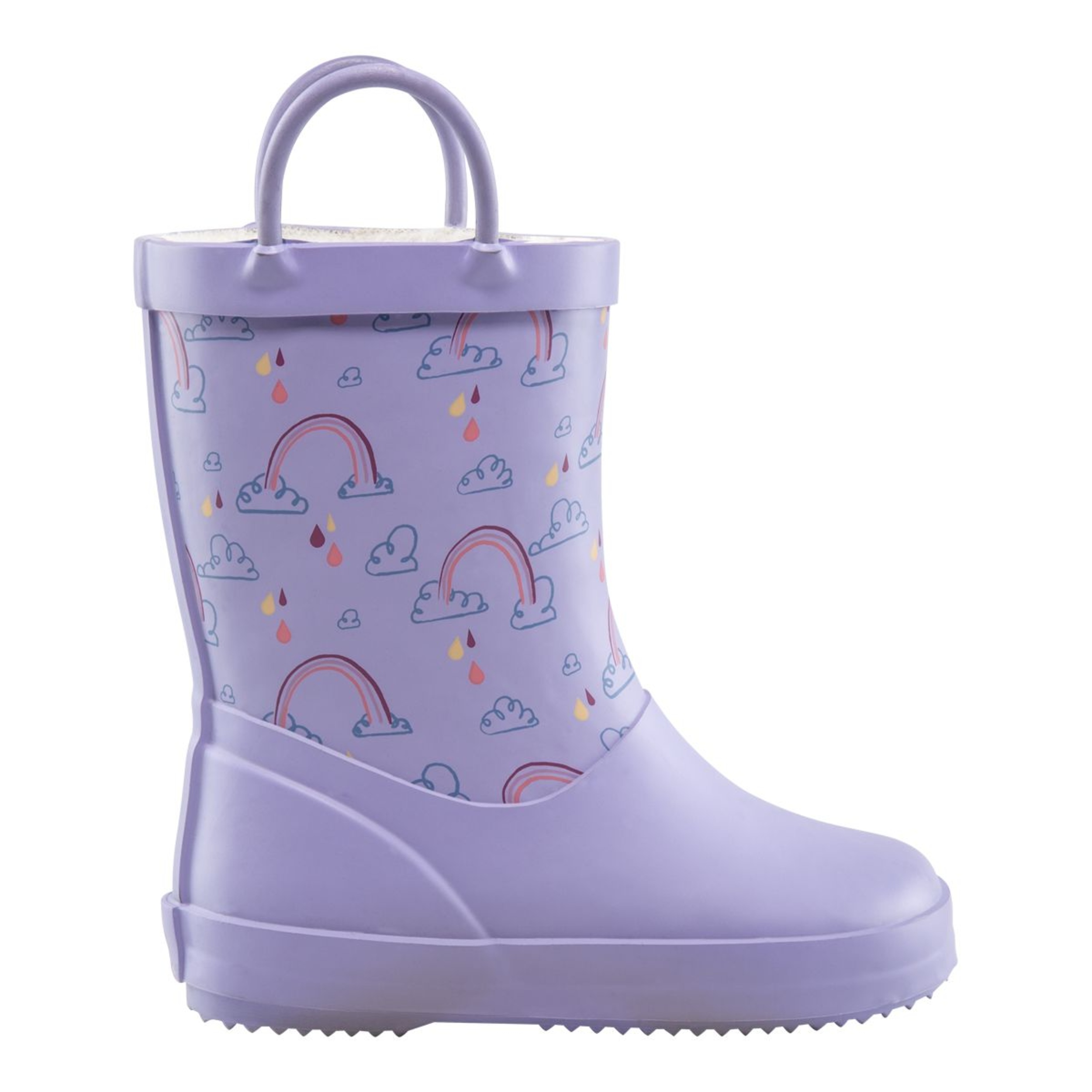Designed for little puddle-jumpers the Toddler Girls' Iris Rain Boots chase away the rainy-day blues with a solid rubber waterproof construction, a soft lining, and a removable insole. Featuring side pull handles that'll help them get out the door quickly for all the rainy-day fun.