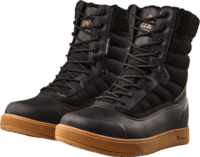 The Ripzone Men's Davenport Tall Shell Winter Boots deliver exceptional warmth and protection for winter adventures. Crafted with a waterproof rubber shell and sealed seams, these boots feature a breathable waterproof membrane to keep feet dry. Insulated with 200g of T-Max insulation made from 85% recycled polyethylene terephthalate and 15% polyethylene terephthalate, they provide reliable warmth in temperatures ranging from -20 to -30 degrees Celsius. The polar fleece lining adds cozy softness, while the tongue gusset prevents snow and debris from entering.