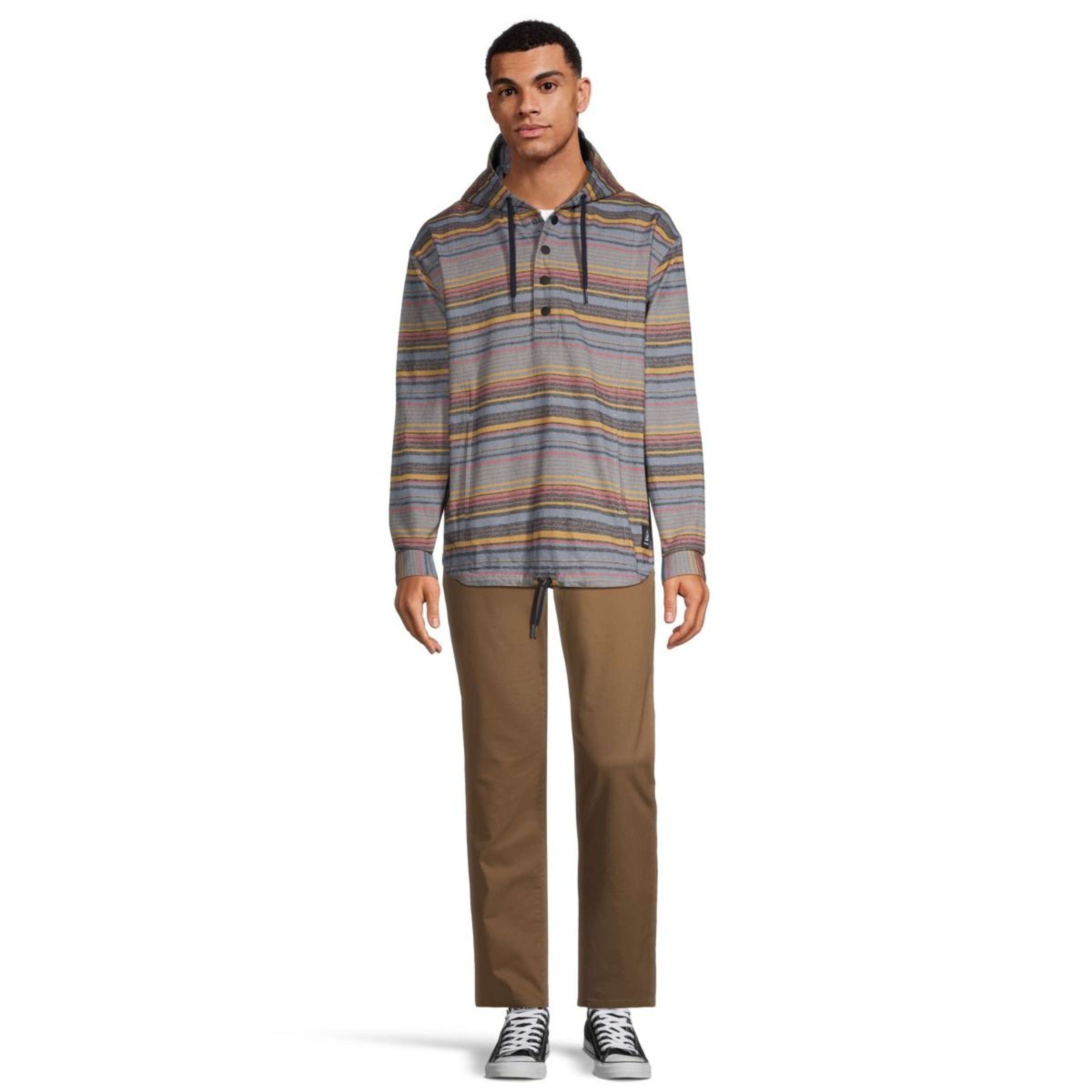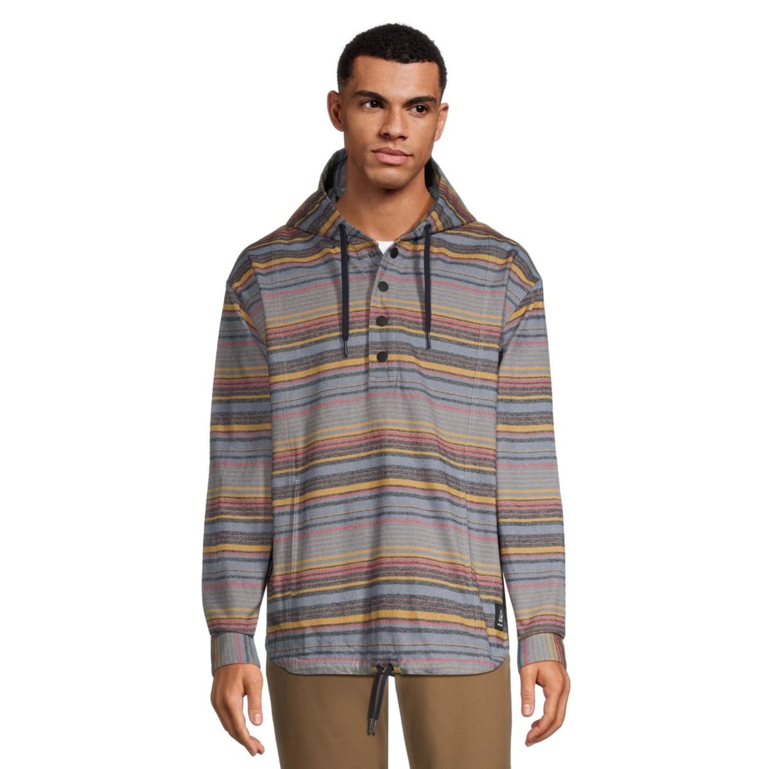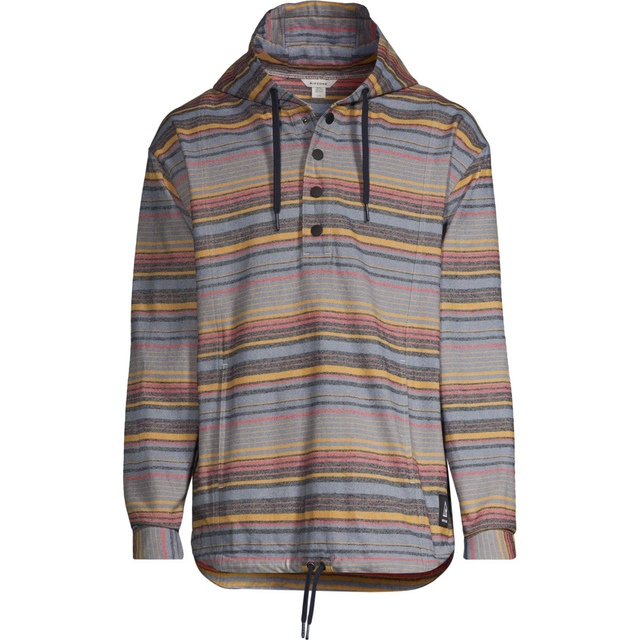The Ripzone Men's Dryden Pullover Hoodie oozes laid-back summer style. Crafted from 100% cotton flannel, it features a relaxed fit, kangaroo pocket and adjustable drawcords at the hood and hem. Seasonal stripes add a stylish touch and hip contrast to the Ripzone men's hoodie.