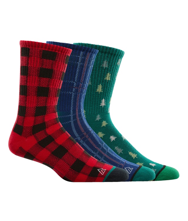 The Ripzone Men's Holiday Crew Socks are the perfect blend of playful style and reliable comfort. Featuring ribbed arches that contour to the shape of your feet, they provide enhanced support, while reinforced heels and toes ensure lasting durability. Packaged in recycled materials, this 3-pack offers exceptional value and sustainability.