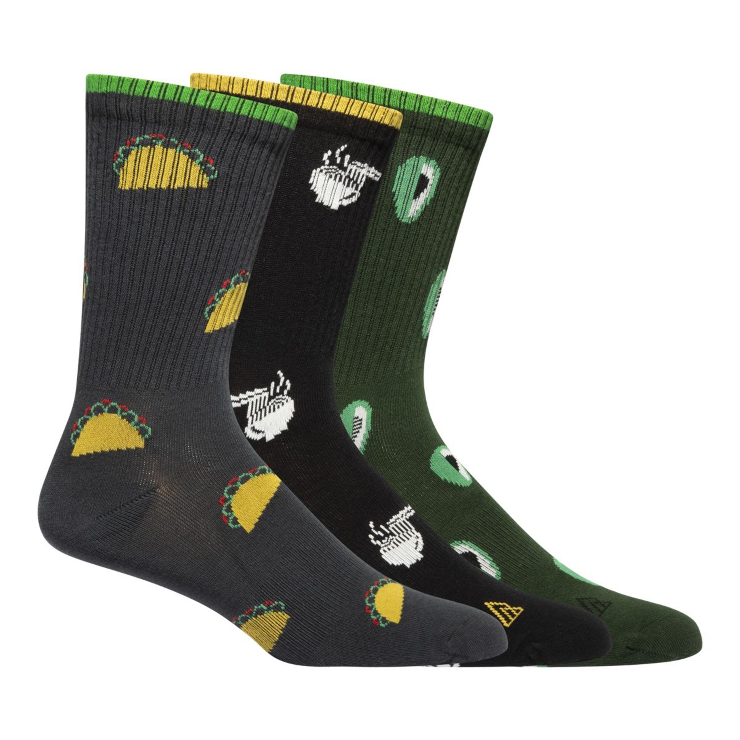 Triple the comfort, Ripzone's 3-pack of Ripzone Men's Printed Crew Socks come in a cotton blend with just the right amount of stretch. Heels and toes are reinforced for durability and the Y-heel design provides an improved fit. These socks have a comfortable welt, or upper band, continues to deliver comfort during extended wear.