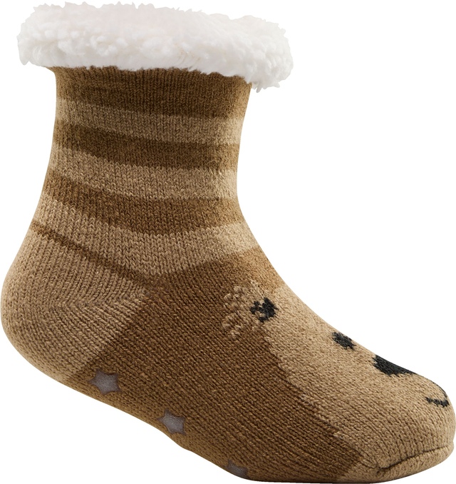 The Ripzone Toddler Cozy Animal Otter Ski Socks keep little feet warm and cozy during winter adventures. Featuring a soft brushed high-pile interior for extra warmth, silicone grips on the soles enhance traction. Reinforced toes and heels ensure durability, while flat finish toe seams provide an irritation-free fit for all-day comfort.