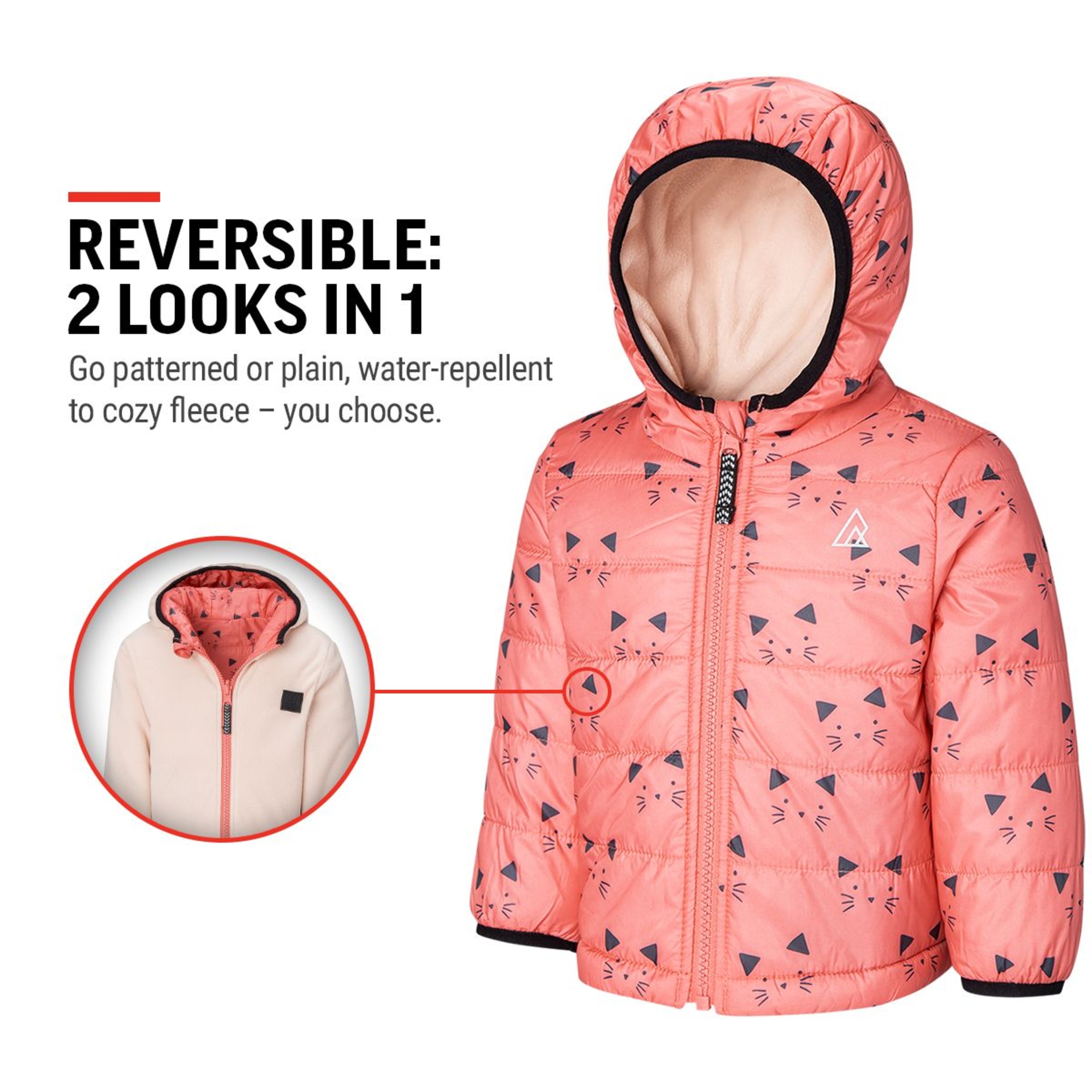 The Ripzone Infant Baby Reversible Insulated Jacket is a versatile transitional jacket with two looks in one. A cozy 100% Polyester Fleece on one side that reverses to a hooded durable water repellent jacket on the other, with 80g of insulation it will quickly become a go-to for unpredictable weather and weekend adventures.