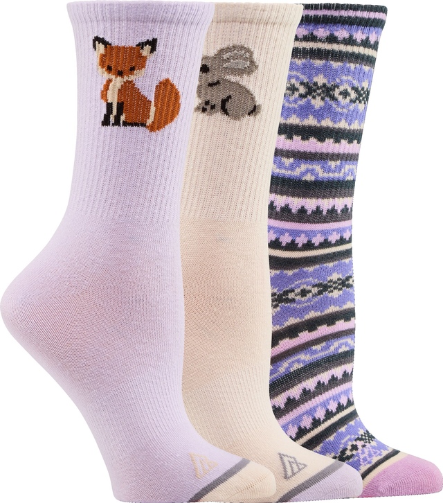The Ripzone Women's Animals Crew Socks feature fun, nature-inspired graphic designs and moderate cushioning for a snug, comfortable fit.