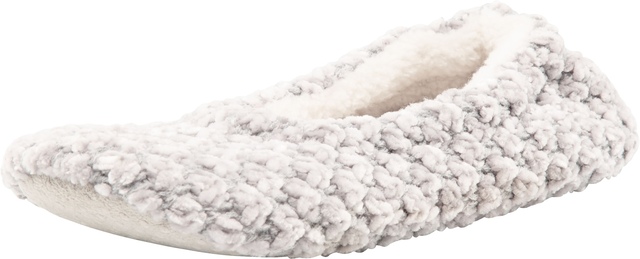 Slip into cozy comfort with the Ripzone Women's Harlow Ballerina Slippers. The memory foam insole offers cushioned support, while the faux shearling lining keeps your feet warm and snug. Underfoot grippers provide secure traction on wood and tile floors, and the elastic collar ensures a perfect fit. Their flexible design also makes them easy to pack.
