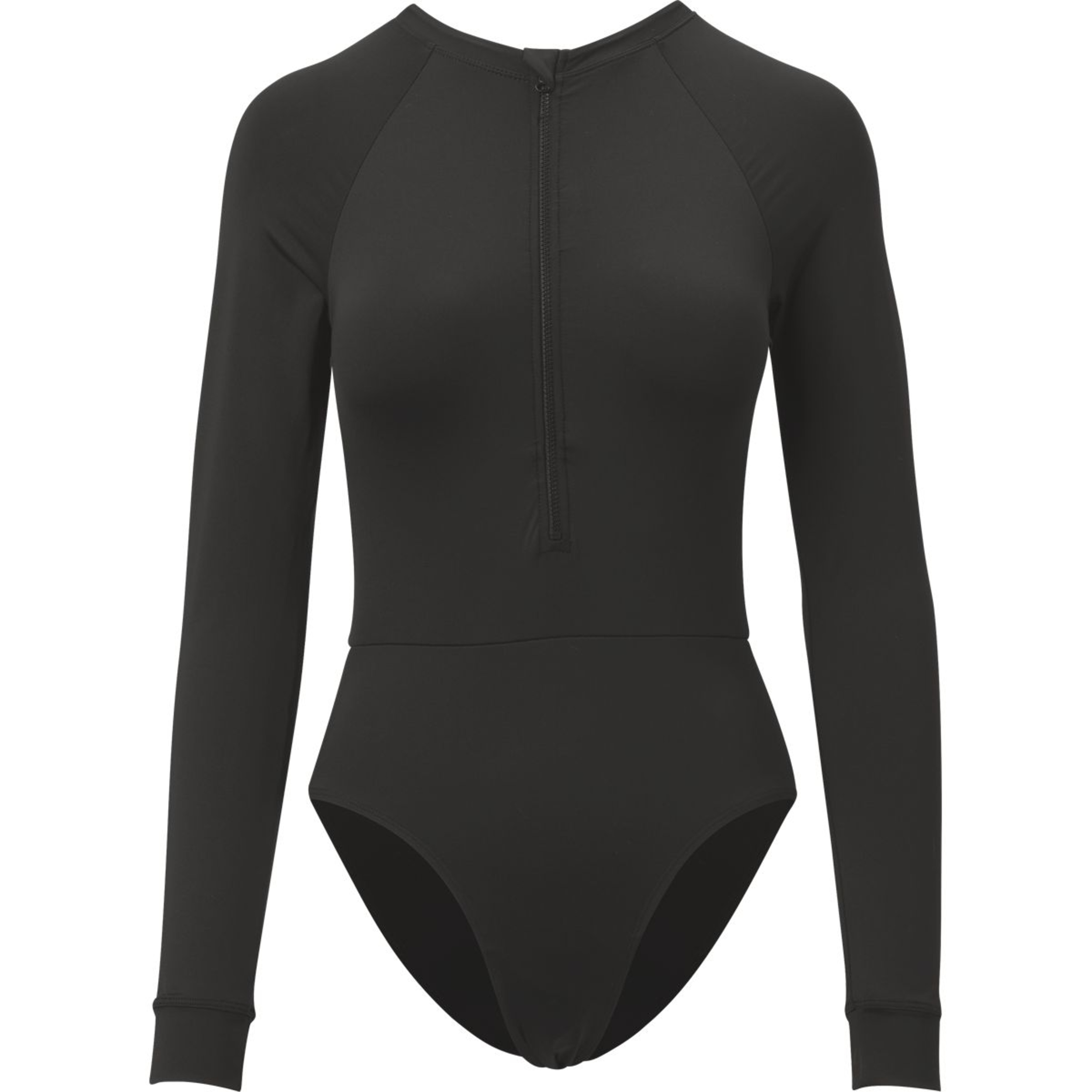 Make a splash with the Ripzone Women's One Piece Long Sleeve Rashguard. It features a mid-length centre front zipper for easy wear and adjustable coverage, making it perfect for long beach days and surfing sessions. Enjoy comprehensive sun protection and sporty style with this versatile swimwear.