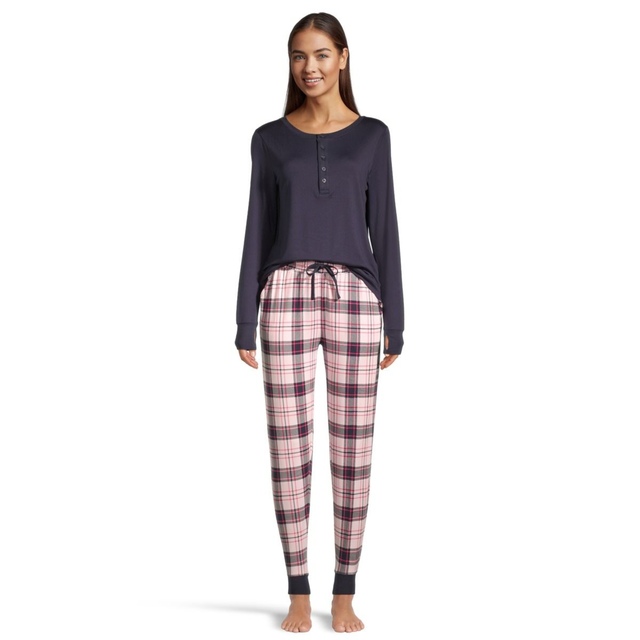 Discover ultimate comfort in the Ripzone Women's Sleepwear Set. The rich pomegranate-coloured top features a classic center front placket and cozy long sleeves with ribbed cuffs for a perfect fit. Paired with coordinating bottoms designed with convenient pockets, an adjustable drawcord waist, and matching ribbed cuffs, this sleepwear set delivers both style and comfort. Perfect for cozy nights in, relaxed mornings, and gift giving.