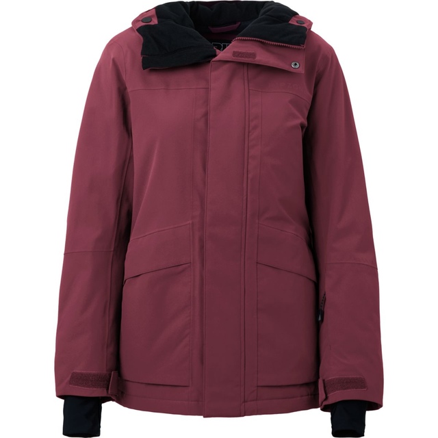 The Ripzone Women's Solara 2L Insulated Jacket offers reliable warmth and protection. Featuring 2L waterproof fabric with full seam taping and Primaloft Black Eco insulation, it ensures comfort in cold conditions. An Aerogel-insulated phone sleeve and RECCO® Reflector add safety and convenience, while multiple pockets provide ample gear storage. The helmet-compatible hood, underarm zip vents, and fixed snow skirt allow for adjustable comfort.