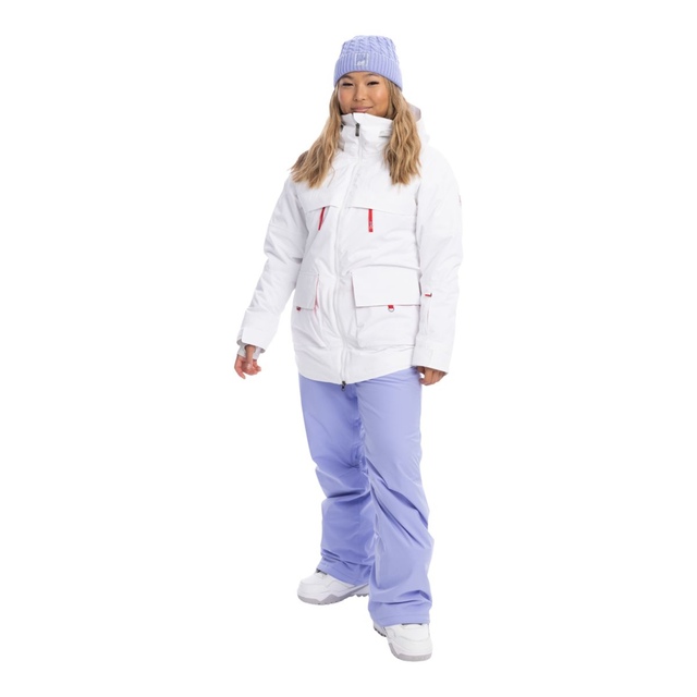 The Roxy Women's Chloe KIM Pants provide waterproof and insulated protection for snowboarding. Featuring DryFlight® technology and PrimaLoft® insulation, these pants offer 15,000 mm waterproofing and warmth without excess weight. Mesh-lined vents, multiple pockets, and adjustable features allow a custom fit. Part of the Roxy x Chloe Kim collection, these snow pants integrate seamlessly with Roxy jackets.