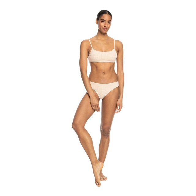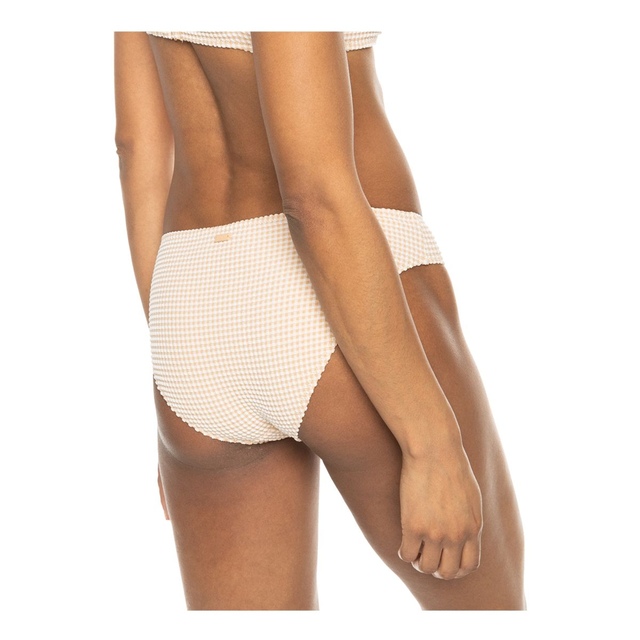The ROXY Women's Gingham Hipster Bikini Bottom offers full coverage with a comfortable mid-rise fit. The recycled seersucker textured fabric is soft, strong and stretchy, making this ROXY swimsuit bottom a fashionable and functional choice for active beach days.
