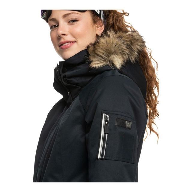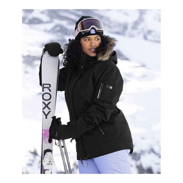 The Roxy Women's Meade Insulated Jacket is a tailored short-fit insulated jacket designed for optimal freedom of movement. Constructed with waterproof 10K Roxy DryFlight technology and critically taped seams, it provides reliable weather protection. The Roxy WarmFlight Eco insulation offers warmth without excess bulk, while mesh-lined underarm vents enhance breathability. The jacket's chin guard features integrated Roxy HydroSmart technology to protect skin in harsh conditions.