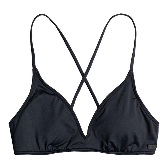 Made in an eco-conscious, recycled stretch fabric, the Roxy Women's SD Beach Classics Tri Bikini Top offers a fresh take on a classic style. The triangle bralette design features crisscross back straps for athletic support and removable padding for customizable curves, making it perfect for beach days or poolside lounging.