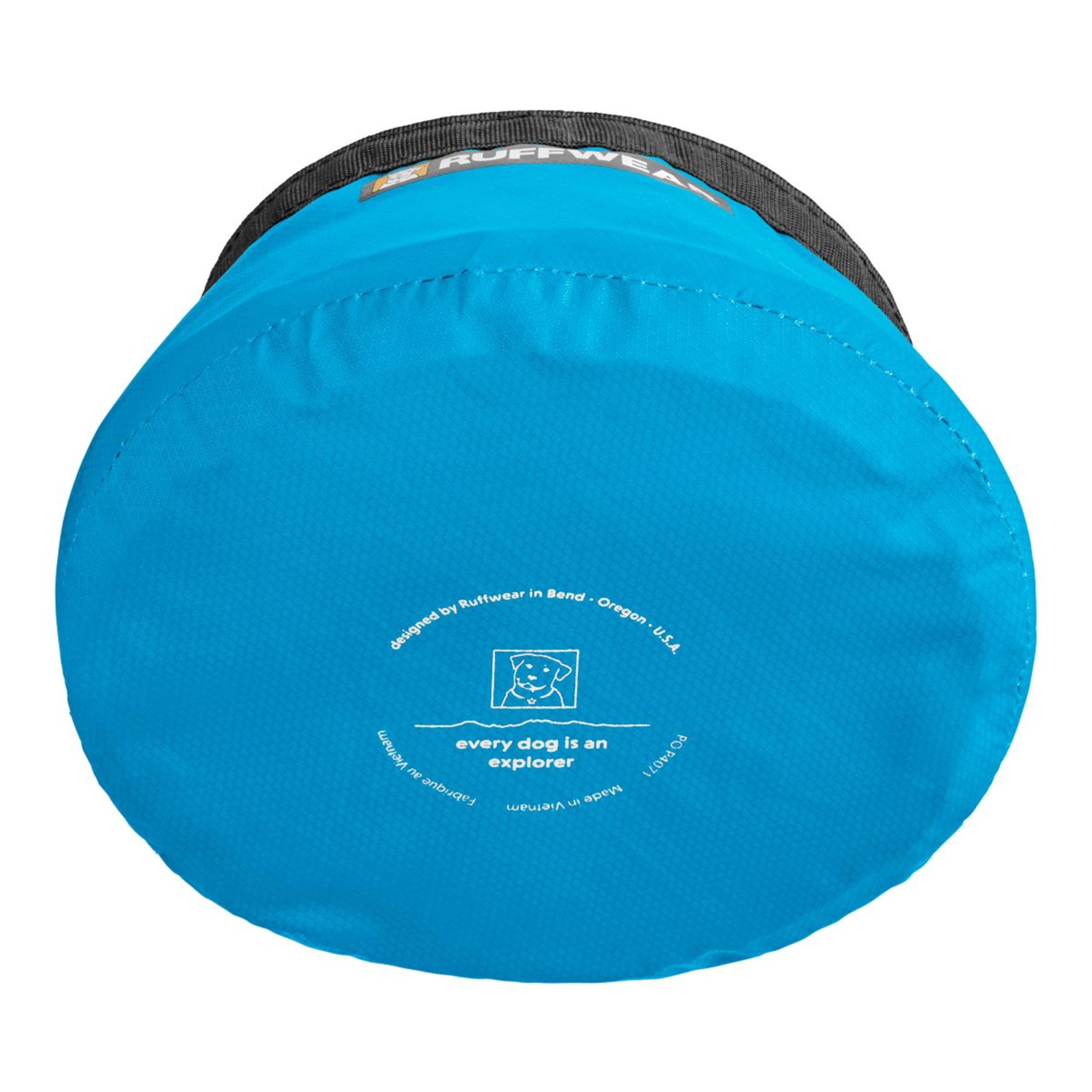 The Ruffwear Trail Runner Dog Bowl is a collapsible fabric dish for your hiking and travel adventures. This portable dog bowl packs into itself for easy carrying, making it suitable for water and food breaks on the trail. The PVC-free coated fabric features single-wall construction that's easy to clean. With a minimalist design, this dog bowl fits into pockets of most running apparel.