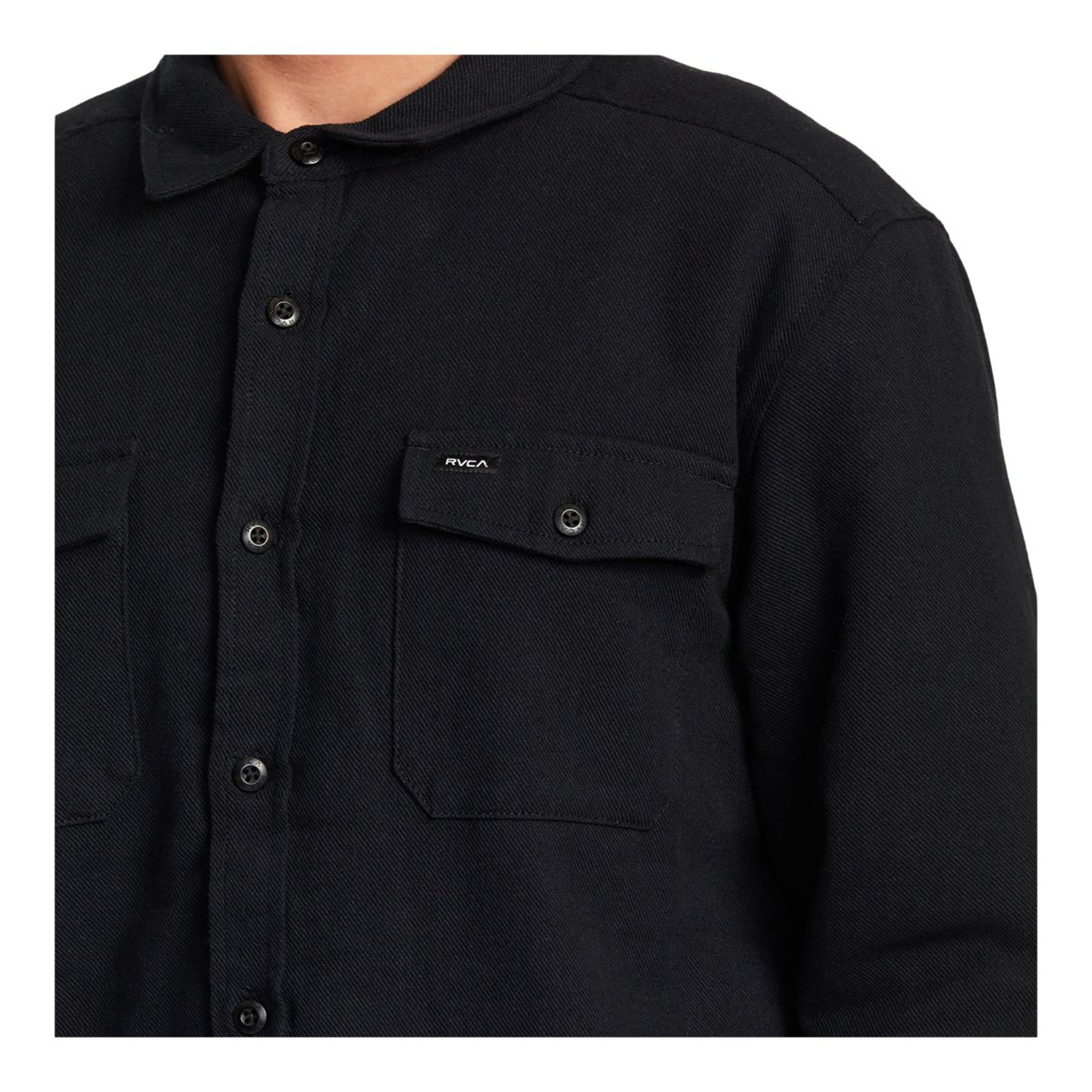 THE RVCA INSTRUMENT QUILTED FLANNEL SHIRT RESURRECTS A CLASSIC STYLE, WITH A MODERN TWIST. MADE FROM YARN-DYED COTTON, THIS LINED FLANNEL FEATURE A TRADITIONAL COLLAR, LONG SLEECES, SCALLOPED HEM DOUBLE CHEST POCKETS WITH BUTTON FLAPS AND WOVEN RVCA BRANDING