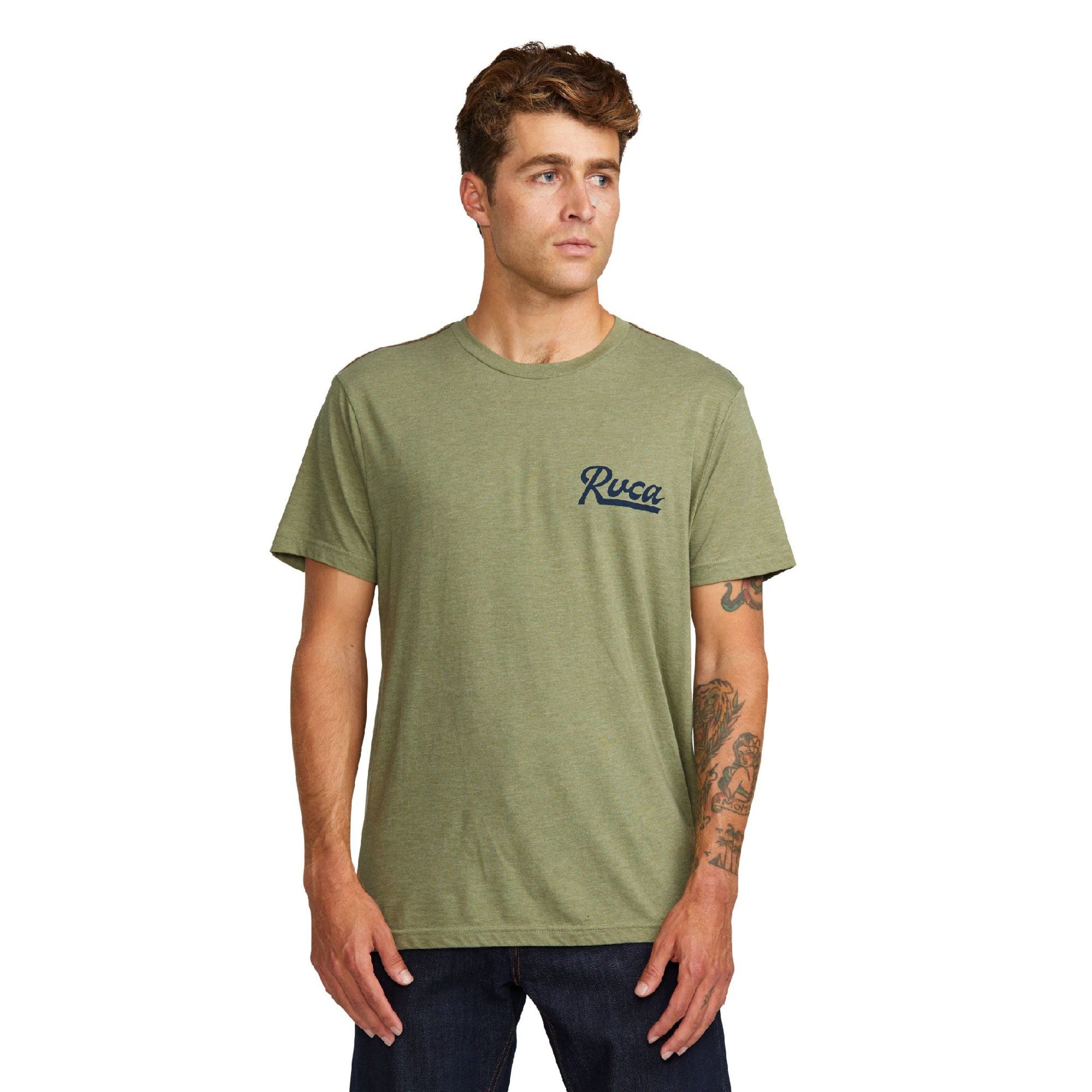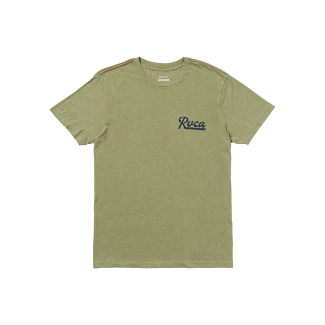 You may be interested in these similar products shown below.The RVCA Men's Script Sealed T Shirt combines comfort and style in a slim-fitting, standard length top. This casual tee features a lightweight yet durable cotton and polyester blend fabric with a vintage dye for a trendy, worn-in look. Bold screen prints adorn the front and back, while red stitching accents provide a stylish pop of colour.